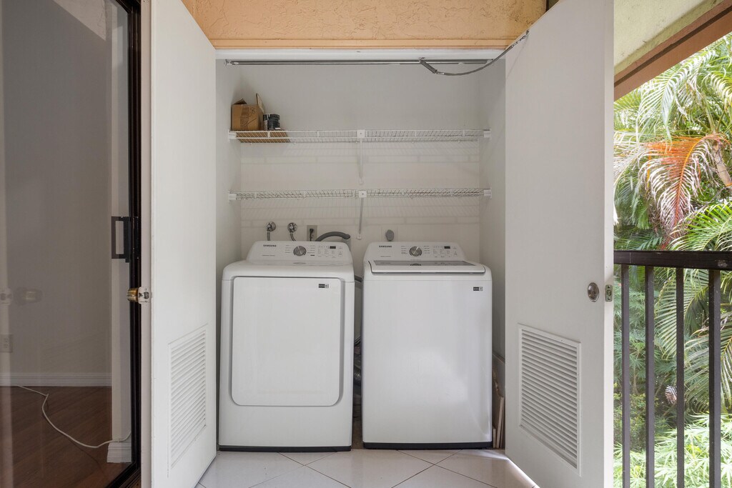 Beautiful 2bed-2bath condo located on the 2nd floor in the desirable Boca Palms community. This unit features vaulted ceilings, a renovated master bathroom, private screened balcony, in-unit washer and dryer, stainless steel appliances, and a spacious walk-in closet in the primary suite. Enjoy a peaceful lifestyle in the heart of Boca Del Mar, one of Boca Raton's most established and centrally located neighborhoods, just minutes from Town Center Mall, Florida Atlantic University (FAU), Mizner Park, top-rated A+ public schools, I-95, and Boca's best beaches. Boca Palms offers a community pool, hot tub, and car wash station, all nestled within beautifully landscaped grounds. Great location surrounded by parks, walking trails, and upscale shopping & dining. Water, sewer, & cable are included