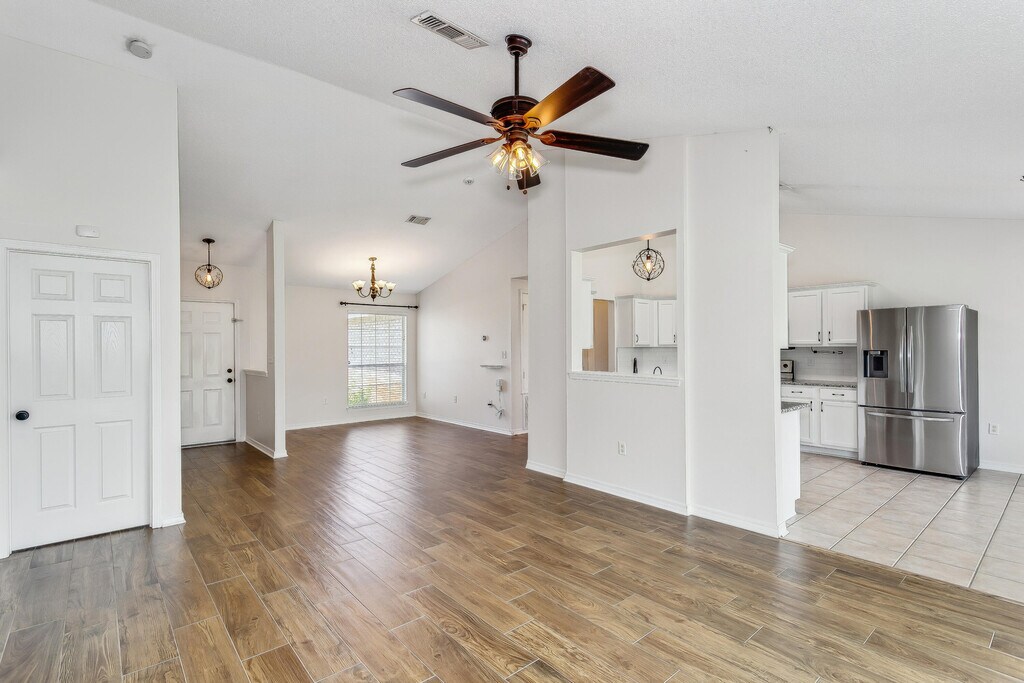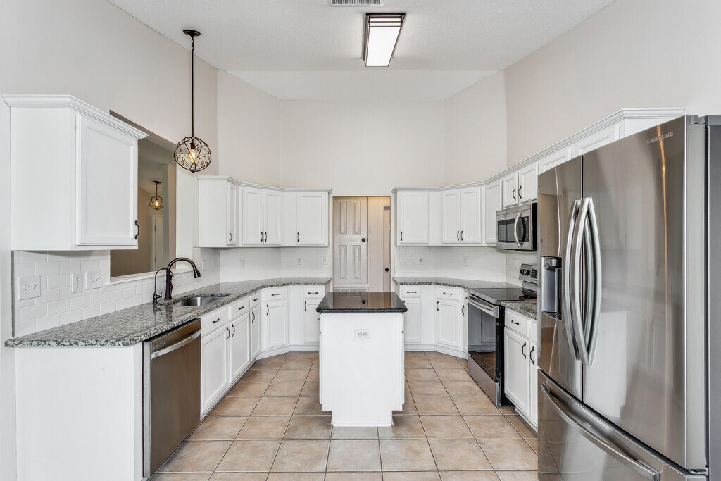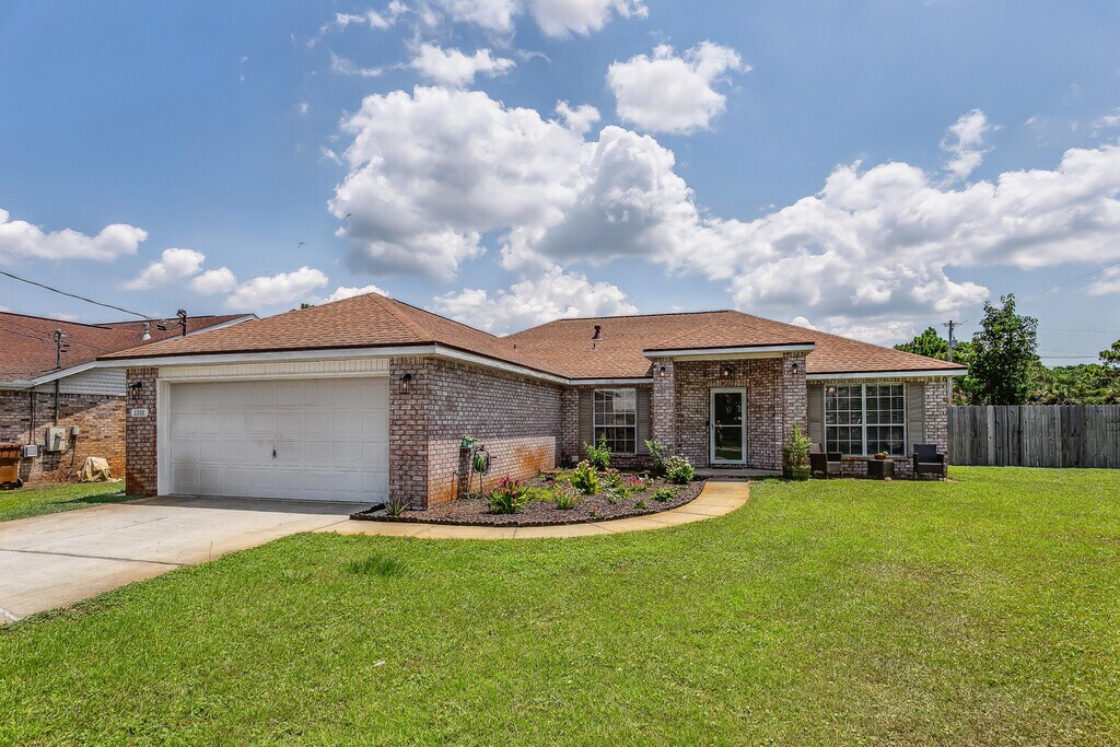 Gorgeous Corner-lot home w/huge fenced in back yard! 4 bed/2 bath home in East Navarre! NO HOA!! Tile throughout the house NO CARPET!! Majority of the home showcases beautiful wood look tile. Updated kitchen w/ stainless & black appliances, french door refrigerator, built in microwave, smooth top range, dishwasher, water filtration in kitchen, with washer and dryer(not warranted).Granite countertops, oil rubbed bronze hardware, & white subway tiled backsplash! The master bathroom has a double vanity, soaking tub, walk in shower and features a large custom mirror! This is a split bedroom floor plan with the master bedroom on one side and the three guest bedrooms on the opposite side of the home! Chamberland smart garage system. Large covered back porch.1 year lease and pets upon approval