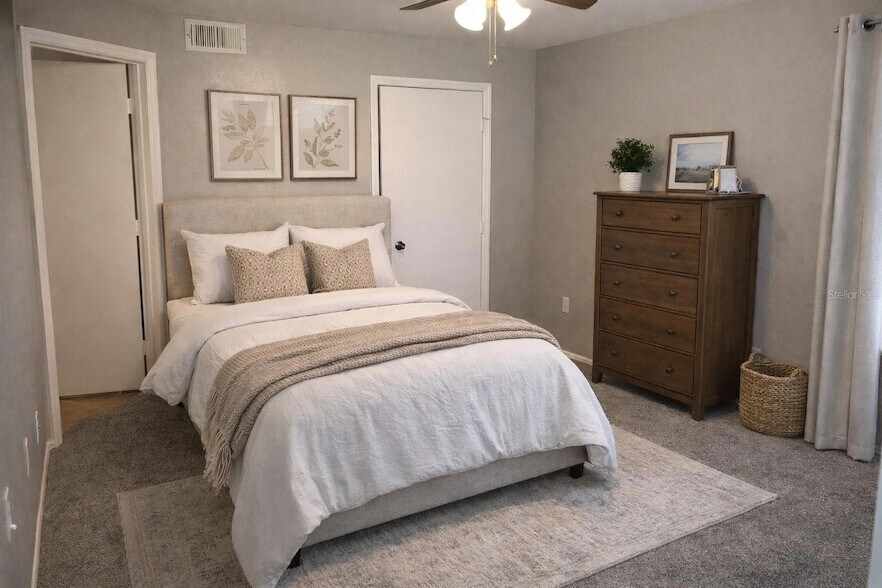 Beautiful first-floor condo featuring 2 bedrooms and 2 bathrooms located in Villa Del Sol. This well-maintained unit offers tile and carpet flooring, updated toilets, in-unit washer and dryer, and all appliances included. Enjoy a BBQ/picnic area just outside the home. Situated within a gated community that is quiet and well-kept, residents have access to a variety of amenities including a fitness center, sauna, jacuzzi, tennis courts, two swimming pools, playground, clubhouse, and on-site laundry facilities. Ideally located in the heart of Kissimmee, this property is close to local transportation, schools, and The Loop, featuring over 70 stores, 15 restaurants, and Regal Cinema 16. Just minutes from Disney World and major roadways including US-192, John Young Parkway, Osceola Parkway, Orange Blossom Trail, I-4, and SR-417.