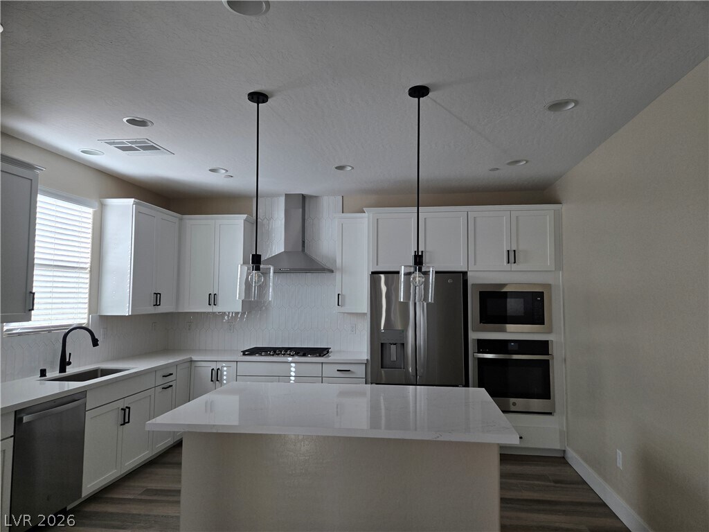 Cul-de-sac Summerlin West STUNNER - fully upgraded throughout, 5 beds/3 baths/LOFT, and all appliances included. If modern contrast is your thing, look no further ~ adorned with dark hardware, ceiling fans/lights in every room, easy to maintain wood plank tile floors in all traffic areas and baths, wall sliding door to your shaded patio & fully finished backyard to enjoy the beautiful desert skies. Step over to your kitchen with vented hood, backsplash, cooktop, built-in oven & microwave, all in tasteful stainless steel. A bedroom and shower bath round out the lower floor, while upstairs, you'll be greeted by an open loft, a laundry room with SINK & CABINETS, THREE more bedrooms, a bath with double sinks, and a bright primary bedroom with a fitting en-suite bath with a walk in shower complete the upstairs areas. RENT INCLUDES YARD, SEWER, AND TRASH CHARGES!! BEST VALUE PSF!