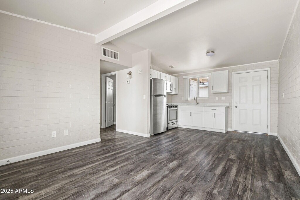 This beautifully remodeled one-bedroom apartment offers modern design and comfortable living in a quiet,single-level community no upstairs neighbors! Enjoy updated vinyl flooring throughout and an open kitchen featuring stainless steel appliances,including a refrigerator,flat-top stove,and built-in microwave.