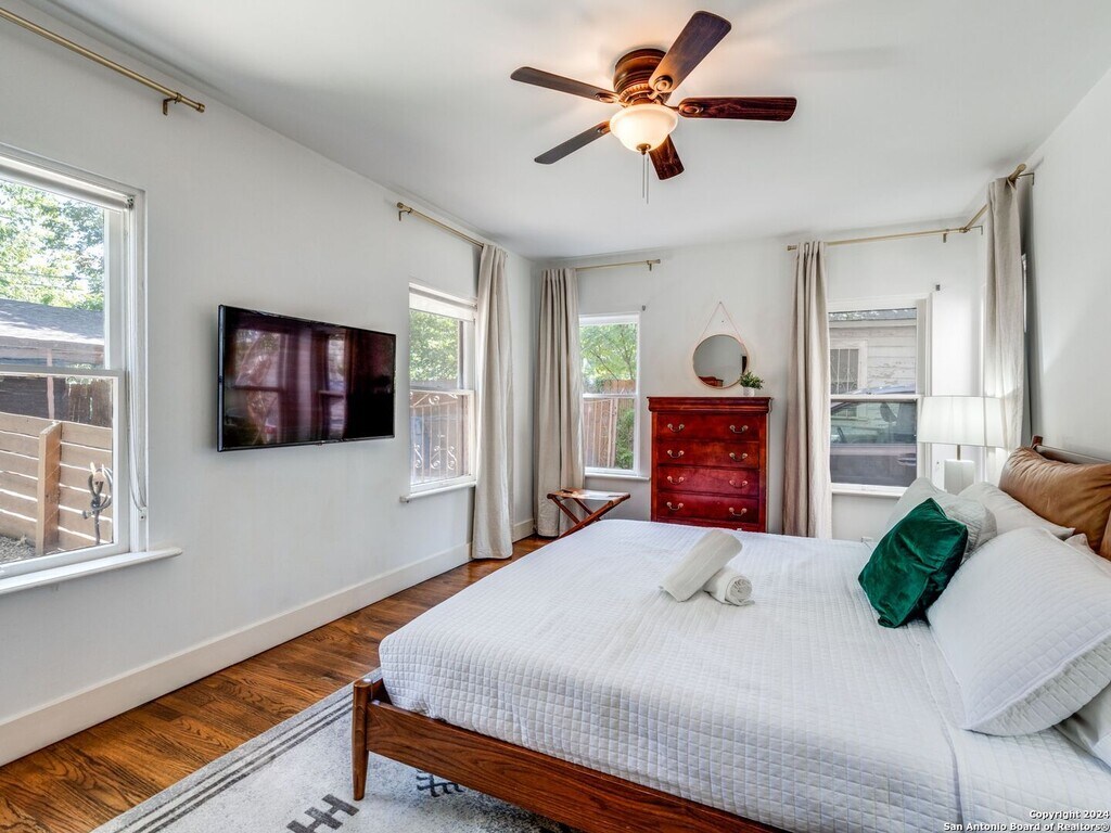 Charming 2-Bedroom, 1-Bathroom Upstairs Unit in Mahncke Park Neighborhood in San Antonio. Great Location Near HWY 281, Minutes to Witte Museum, San Antonio Zoo, Japanese Tea Garden, Restraunts, Entertainment, & More. Enter to Spacious Living/Dining Area, Finishes Include Wood Flooring, Ceiling Fans & Neutral Paint Colors. Gourmet Kitchen Features Eat-In Breakfast Area, Refrigerator & Stove Appliances, Pantry, & Tiled Flooring. Primary Suite with Great Natural Light, Ceiling Fan, & Large Closet. Nicely Sized Secondary Bedroom, Full Bathroom with Tub/Shower. Laundry Room Provided Off Kitchen. Low-Maintenance Backyard with Privacy Fence. Pets Case-by-Case, Each Applicant Must Complete Pet Application & San Antonio ISD.