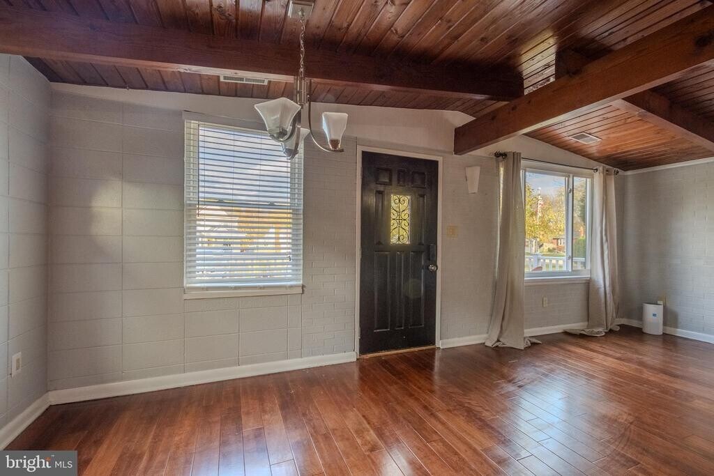 Charming home with vaulted wood beam ceiling. 2 bedrooms, 1 bath. Open living area with lots of natural light. Kitchen with Corian countertops, stainless appliances and tile backsplash. Exterior features a front porch and side patio. 2 sheds for lots of storage. Fenced backyard. Walk to community beach. Beverley Triton Nature Park offers extensive walking trails. Close to Annapolis, Baltimore & DC. Pets case by case. $50 pet rent per pet. No smoking, good credit. Pellet stove is not functional and not to be used by the tenant. Applicants can apply online at Long & Foster's website. Application fee is $55 per applicant.
