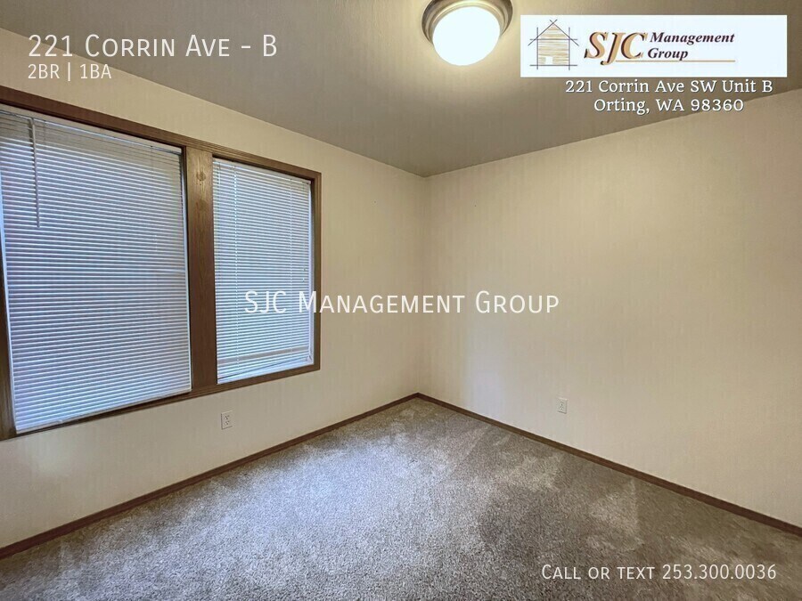 Well-kept 2 bedroom/1 bath ground floor apartment in the heart of downtown Orting. Walk to the post office, restaurants, shopping, parks, medical clinics and more! Enjoy the beautiful views of Mt. Rainier throughout the town. The welcoming living area features an open floor plan that easily accommodates a variety of furniture layouts. The kitchen is equipped with a refrigerator, stove, and dishwasher. Both bedrooms are nicely sized, offering comfortable living space. A convenient stackable washer and dryer are included. Enjoy the outdoors on the small patio, perfect for your furniture and grill. For more information or to set up a viewing please contact the leasing team at SJC Management Group today! Small pets [breed and size restrictions may apply] are considered, pet screening required. Approved pets will incur a pet mitigation fee (between $150 and $350) at move-in + a monthly pet fee of $35-$75, max two pets. Please note showings can be scheduled online at any time. After hours or weekends, showings must be scheduled and confirmed by our staff before the end of the business day. Our business hours are Monday-Friday from 9 am to 5 pm. We are closed for all major holidays. ADDITIONAL TERMS: Required $85 at move in and additional $35 per month Resident Benefit Package that offers an array of advantages. With this package, you'll enjoy convenient benefits to enhance your renting experience. UTILITIES: Garbage paid by landlord. All other utilities paid by tenant DEPOSIT REQUIRED: $1700