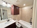 This 2-bedroom 2-bath home is a must-see!! The home features a large living room with plenty of natural light. Gorgeous kitchen with all stainless-steel appliances, granite countertops, and shaker cabinets. Kitchen appliances include microwave and refrigerator. Large primary bedroom with ensuite bathroom and walk-in closet. Utility room with full size washer and dryer hookups (washer and dryer not included). Schedule your showing today… this won’t last long.