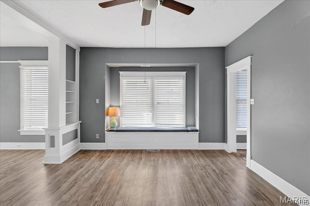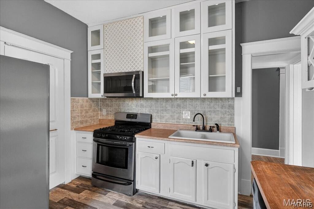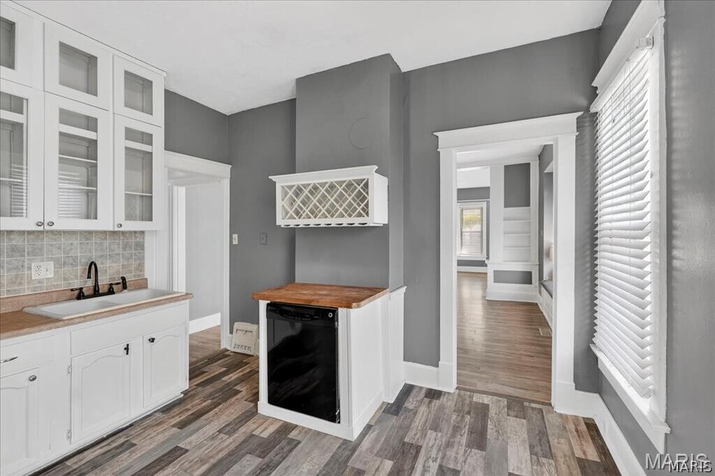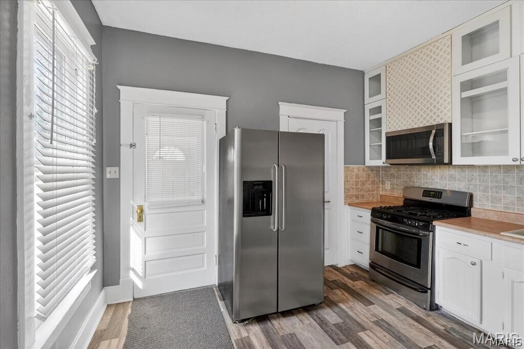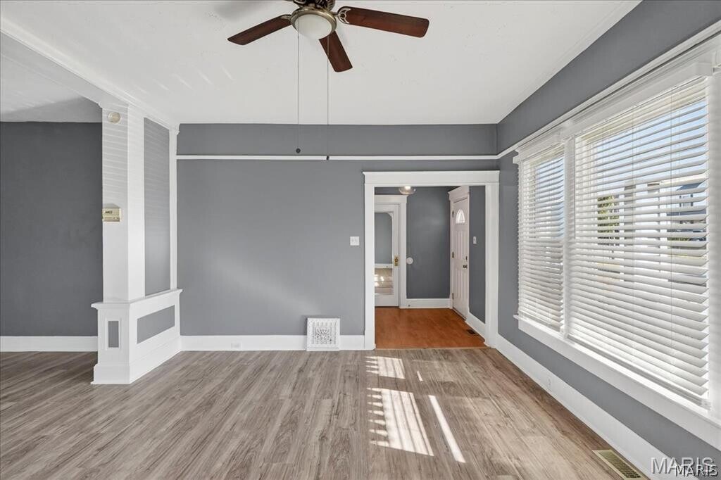 Two Bedroom Home with Covered Front Porch and Foyer Entry, Original Woodwork Details and Beveled Mirror Doors, LVP Flooring Throughout Main Living Areas, 15 x 14 Living Room, 12 x 12 Kitchen with Walk In Pantry and Built In Wine Rack, Stainless Steel Appliances Include Gas Range with Built In Microwave, Garbage Disposal, Dishwasher and Refrigerator, 16 x 14 Dining Room, Full Hallway Bathroom with Double Vanity Sinks, 12 x 12 First Bedroom, 12 x 12 Second Bedroom, One Car Detached Garage, Unfinished Basement with Washer and Dryer Connections Available, Detached One Car Garage Available, Available 04/01/2026.