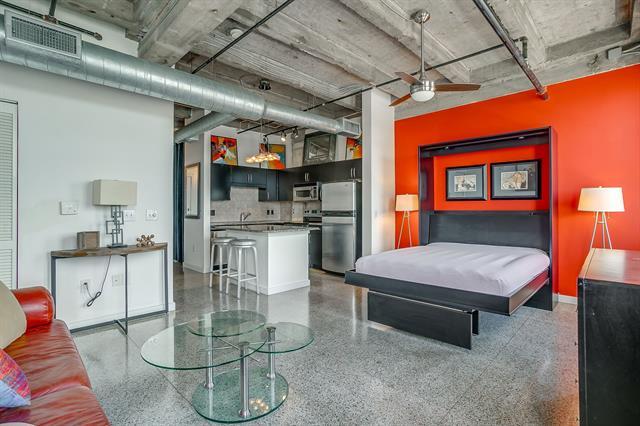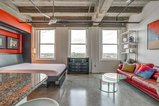 Amazing Views! Historic T & P Passenger Terminal made into condos! This studio is fabulous! They relocated I-30 placing this property in Downtown Fort Worth! Walk everywhere! Restaurants, bars, shopping, Downtown, South Main Village! W Magnolia! Churches! Historic buildings and parks. Molly the Trolley is right across Lancaster. All freeways are easily accessible! Right out back is a commuter rail station! Tex Rail and TRE! This fabulously furnished studio is ready for occupancy! Furniture is optional. Only floor plan that has a true island kitchen. The view is higher than the 11th floor due to levels below not being counted! Original poured-in-place terrazzo floors! Three huge windows! Built-in wall bed! Walk in closet! All appliances stay! Tenant gets a cable and internet package included in lease. Tenant chooses electric company. All amenities included, fitness, business center, club room and more. No HOA dues for tenant. See today! Great energy here! Classy! Contemporary! Cool! Convenient! Wall bad is a queen sized built in and converts to a desk as well! Bring your own mattress. Great for students at Texas A&M Law School or TCU!! Some furnishings can stay or go depending on the need of the tenant.