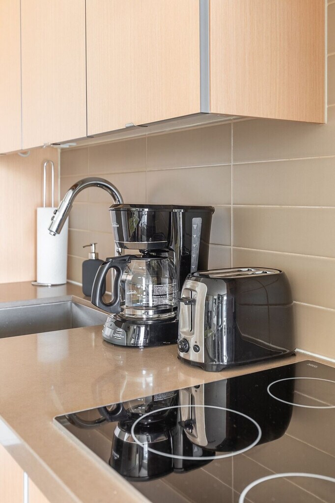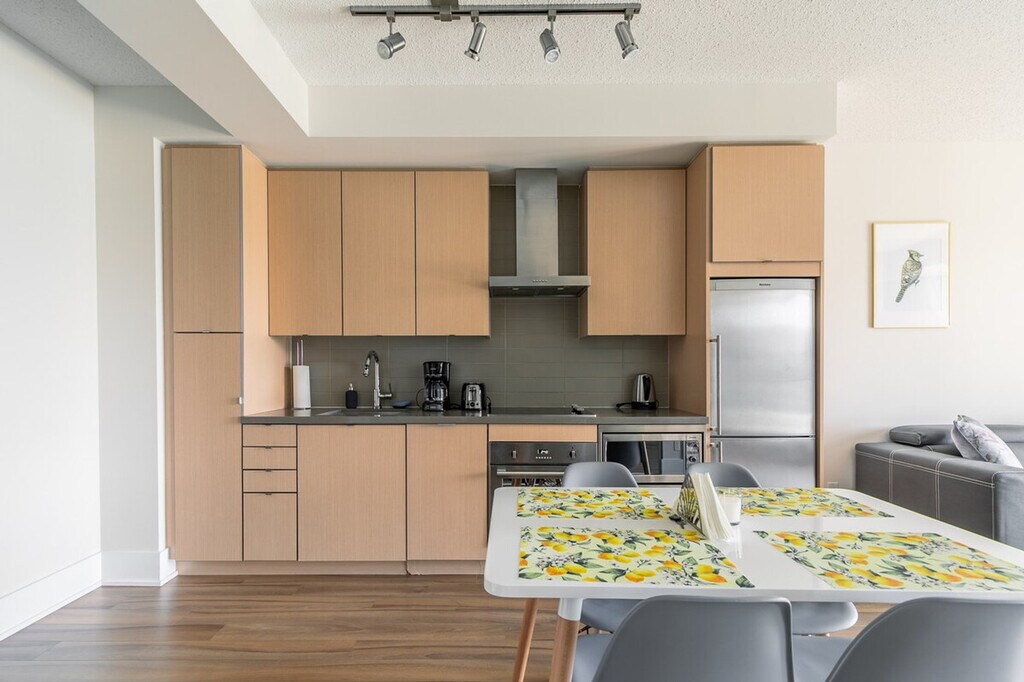 Experience luxury and feel at home in this comfortable suite located in the heart of downtown Toronto, just steps away from Union Station, CN Tower, Rogers Centre, Air Canada Centre, and Harbourfront. This suite has everything you need to feel right at home, including a fully functional kitchen with tea, coffee, a kettle, coffeemaker, and toaster. A washer and dryer with supplies are available for your convenience. The bathroom is equipped with towels, shampoo, conditioner, body wash, a hair dryer, and other toiletries. Paid underground parking with in/out privileges is available upon request for $25 per night, or $15 per night for bookings of at least 15 nights. A travel crib (for babies 0-18 months) and bed rails are available for $5 per item per night. Please book in advance. This centrally located apartment is close to many attractions. Every guest must provide their personal information prior to check-in, including the full names of every guest staying in the apartment. Guests whose names or IDs do not match the provided information are not allowed into the building. Pets are not allowed in the apartment. [SI]