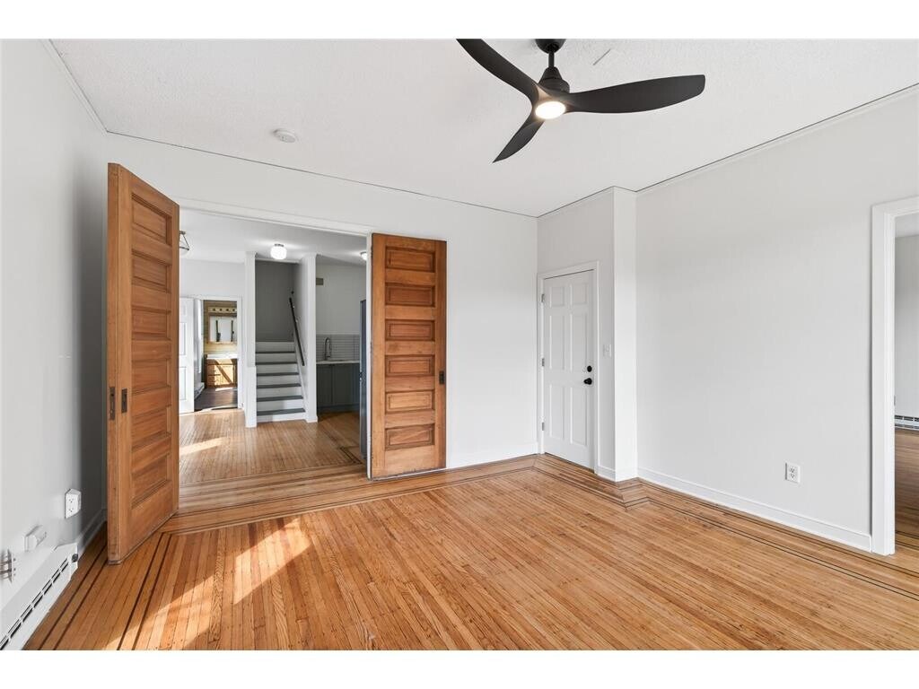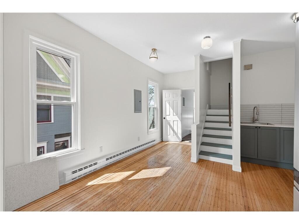 Character and updates meet in this stunning two-level upper unit in one of Minneapolis's most walkable neighborhoods. Nestled inside a classic Victorian building with an impressive shared entryway featuring original woodwork, stained glass, and period tile, Unit 3 offers the charm of old Minneapolis with the comfort of modern updates. The renovated kitchen shines with sage lower cabinetry, white upper cabinets, subway tile backsplash, quartz countertops, and a full stainless steel appliance suite. Hardwood floors flow throughout the open living and dining areas, bathed in natural light. Upstairs, find an lofted level with a large bedroom and two bonus rooms, perfect for an office and hobby space or your dream closet. The spacious primary features a ceiling fan. One full bath with an updated vanity completes the unit. Enjoy included off-street parking and proximity to the best restaurants, coffee shops, and parks The Wedge has to offer.