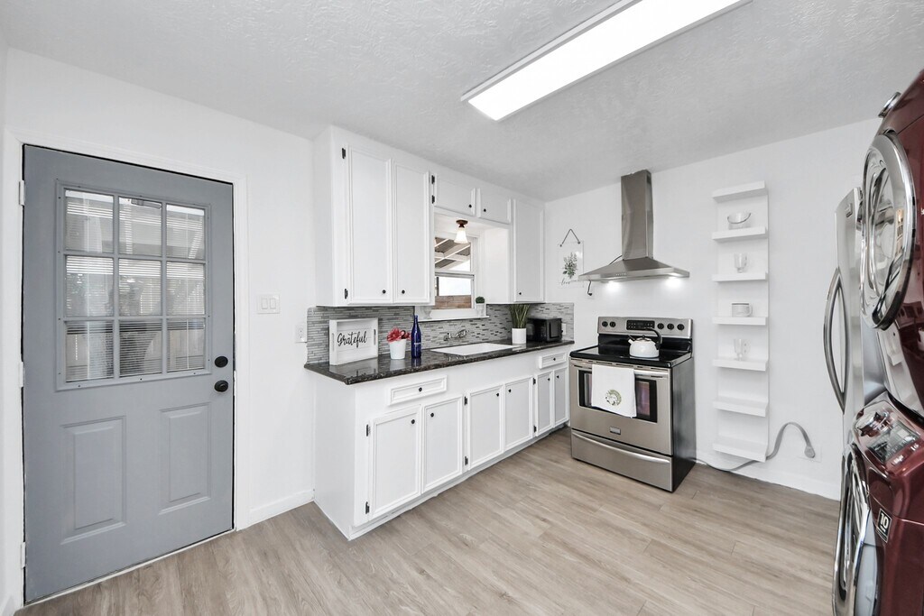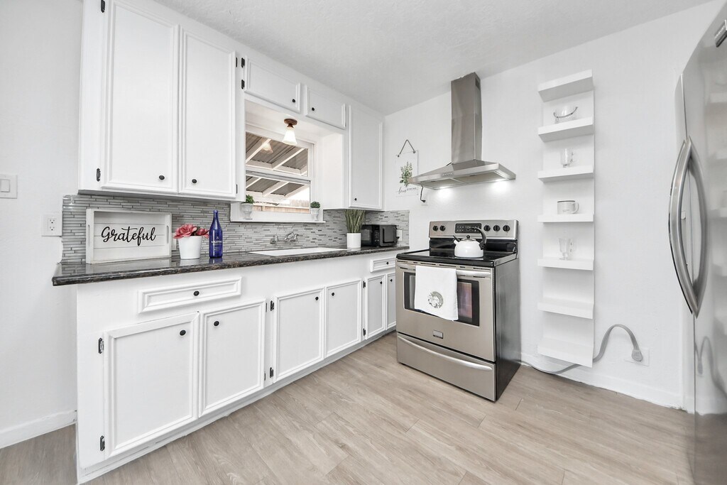 Landscaping Included Prime Location! Welcome to Cottage Grove at The Greater Heights. This charming colonial-style cottage home is perfectly located just minutes from Downtown,Memorial Park,Washington Ave,and The Galleria,with quick access to TC Jester and I-10. The home features central A/C,luxury vinyl plank flooring,fresh paint,and carpet in both bedrooms. Modern ceiling fans are installed in every room. The updated kitchen includes stainless steel appliances,and a washer and dryer are provided. The bathroom offers a jetted tub for added comfort. Enjoy the private fenced backyard with a mature oak tree,ideal for relaxing or entertaining. Located in a vibrant neighborhood close to restaurants,shops,and nightlife. Available for immediate move-in. MLS# 8415059