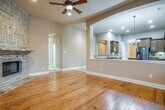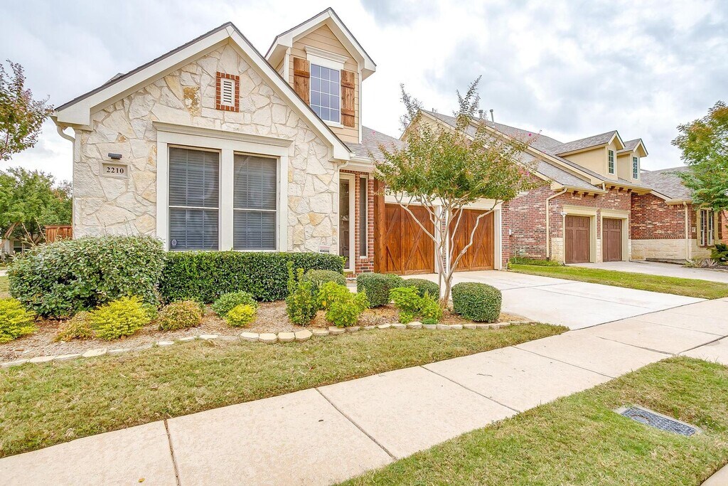This incredible stone home with beautiful landscaping welcomes you. Barn-style double garage. The home has a formal dining area with detailed wainscotting. Carpet and tile throughout the entire home. Open concept ideal for families. Large living area with a central natural gas fireplace. The kitchen features granite countertops with an island for lots of space. Large sink with all the amenities. Separate bedrooms. Large Master Bedroom with walk-in closet, dual sinks, bathtub, and separate shower. Lots of storage and low maintenance back yard. Easy access to dining, entertainment, shopping, schools and parks. Must see to appreciate. Come and make this one your own.