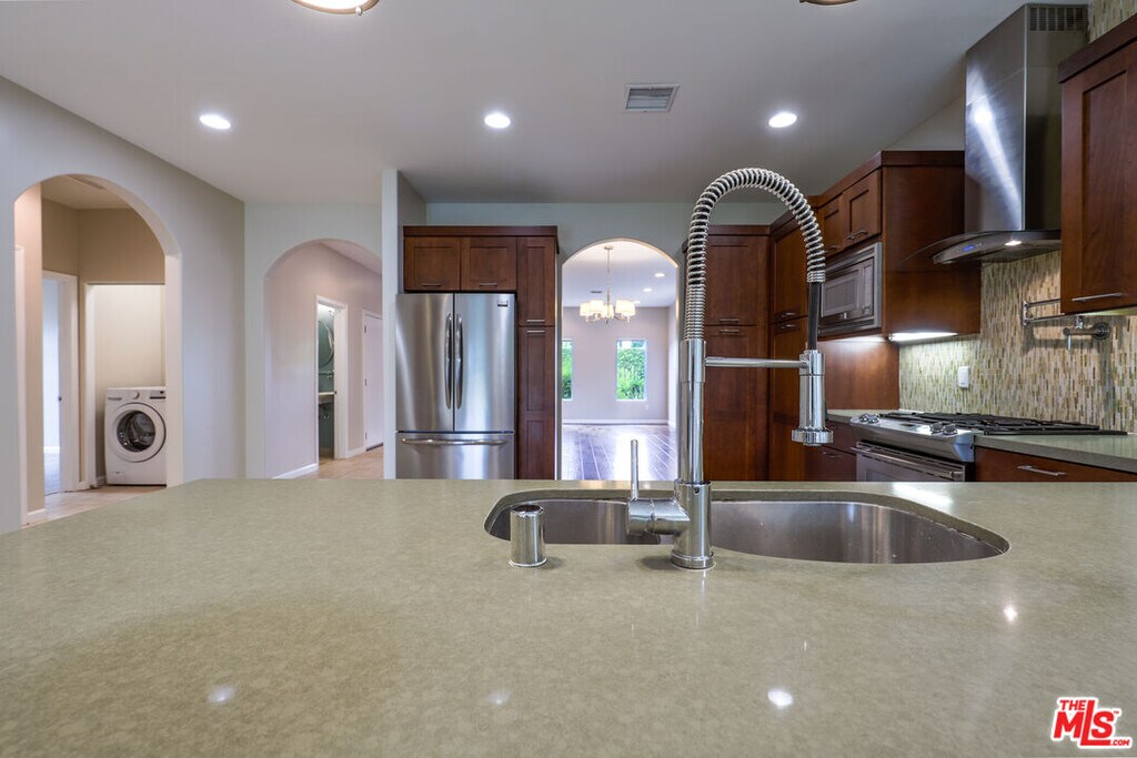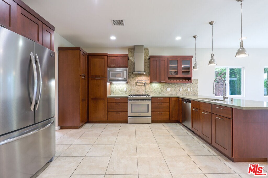 Built in 2011, this beautifully crafted Spanish-style 3-bedroom, 2.5-bath home offers custom finishes and thoughtful design throughout.Step into an open floorplan that welcomes you with a spacious formal living room and elegant dining area, both featuring rich hardwood floors. The chef's kitchen is a true centerpiece, showcasing stunning Caesarstone countertops and top-of-the-line stainless steel appliancesincluding a double-door refrigerator, gas range with custom hood, dishwasher, and microwave.The kitchen flows seamlessly into a bright and inviting great room with a cozy fireplace and sliding glass doors that open to a lushly landscaped backyard perfect for indoor-outdoor living. The primary suite also opens to the yard and includes a full-size walk-in closet with custom built-ins, plus a luxurious ensuite bathroom with a soaking tub and dual sinks. Two additional generously sized bedrooms each offer ample closet space and share a well-appointed full bath. Additional features include a convenient half bath, front-loading washer and dryer, central heat and air, recessed lighting, a large rear patio ideal for grilling, and a 2-car garage with direct access to the home. Located in desirable Rancho Park, you're just minutes from Century City Mall, Westwood Blvd's shops and restaurants, and everything the Westside has to offer. MLS# 25599093