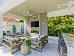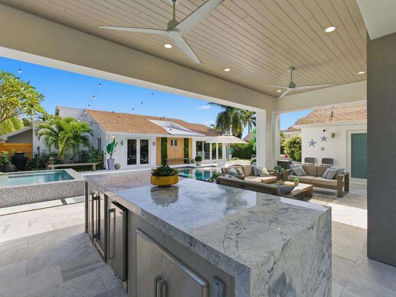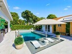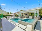 Courtesy of Berkshire Hathaway Florida Realty. ALL UTILITIES, CABLE, INTERNET, POOL SERVICE, LAWN CARE AND CLEANING LADY INCLUDED. Fully renovated and furnished luxury rental in the heart of downtown Delray Beach, just minutes from the beach. This stunning property features 3 bedrooms, 4 baths, plus a brand-new 400 sq ft detached movie theater with a full bathroom, ideal as a private theater or guest suite. Every detail is brand new, luxury, or custom-made. The backyard is a true private oasis, perfect for exceptional entertaining or total relaxation, featuring a luxury pool, hot tub, sauna, and cold plunge. Completing the space is a breathtaking, fully covered custom pergola with an amazing outdoor kitchen, bar, TVs, and fireplace. A rare turnkey private getaway.