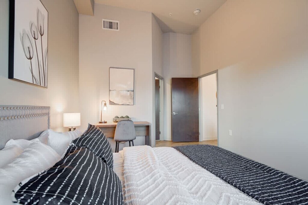 Feel at home in this lavish 2-bedroom, 2-bathroom condo on the first floor, just a few blocks from Montana State campus. This condo comfortably accommodates up to six guests. This condo features an open floor plan, a fully stocked kitchen with top-notch non-stick pots and pans along with complementary cooking essentials, a shuffleboard, and an outdoor living space with a basketball court. The living room features a 55” TV and cozy seating options. The back deck, located off the living room, has outdoor seating. A rental car is available. Centrally located just off of 19th street, this condo is minutes from everything Bozeman has to offer, including Downtown, Montana State, and Big Sky. Bozeman’s Gallatin Field Airport is just a 10-mile drive away. Yellowstone National Park is located just 80 miles away. Bridger Bowl Ski Area and Crosscut Cross Country Ski Area are a mere 17-mile drive away, and Big Sky resort is located just 45 miles away. There is also a community outdoor living area and an outdoor basketball court on site. Smoking is not allowed on the property. Registration Number: STR23-00062 [SI]