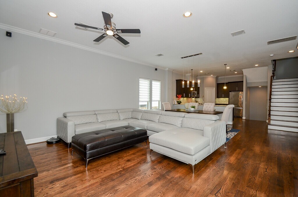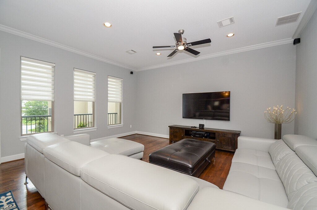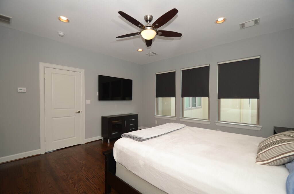 LOCATION LOCATION LOCATION! Beautifully maintained contemporary townhome 3/3/1. Open concept with tons of natural light. Hardwood floors throughout. Oversized balcony off of second floor living area. Custom shades on all windows. All appliances included. Large secondary bedrooms with full baths. Located on the edge of EADO. Minutes to downtown,Toyota Center,Discovery Green,restaurants,shopping and more! Small community with street parking and reserved guest parking. Ample size gated outdoor space. Available March 1st. Long term rentals only! MLS# 11189745