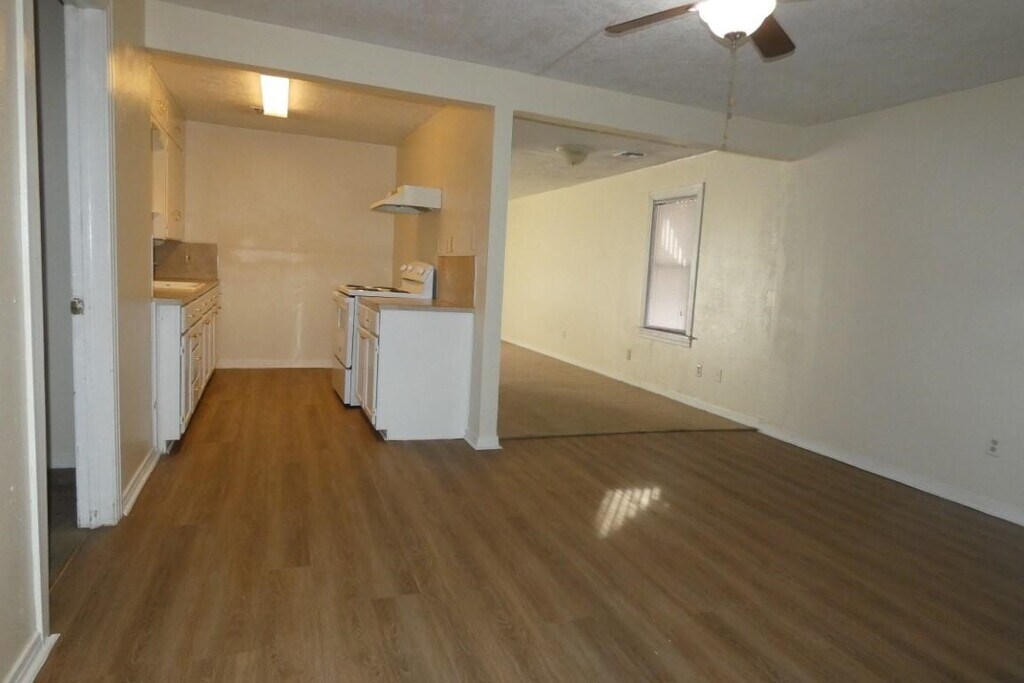 LOWER DEPOSITS FOR APPLICANTS WITH STELLAR CREDIT, RENTAL HISTORY & DEBT TO INCOME RATIO! Application fee(s) are non-refundable. It is centrally located and is within walking distance to Wal-Mart, Walgreens and Sams Club. The home has fresh paint; double pane windows, Large primary bedroom; 2 living areas, ceiling fans, new LVP flooring in den & kitchen. This home includes a newer stove, a new fridge, newer HVAC; washer/dryer hookups & fenced yard. Housing guidelines apply in regards to family size.