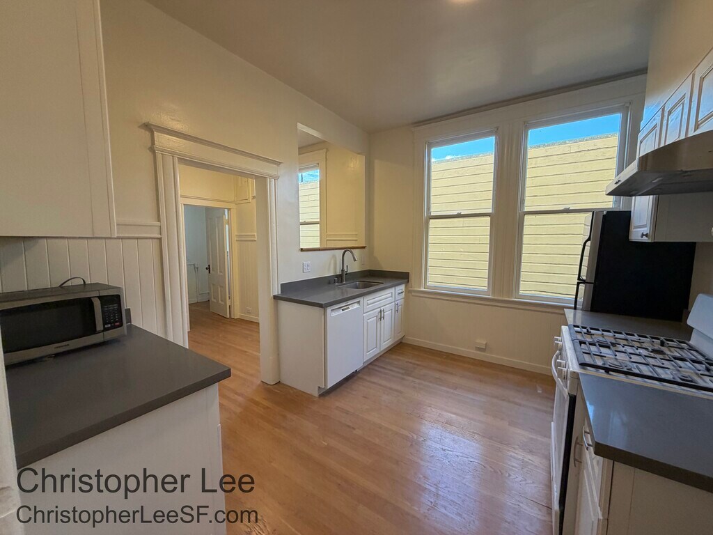Beautiful 1,211 sq ft classic Victorian full-floor flat located on sought-after Pine Street in the heart of Lower Pacific Heights. Washer & Dryer in building! This home features soaring ceilings, original hardwood floors, elegant wainscoting, and preserved period details throughout. The spacious 2-bedroom layout includes a pocket door for flexible living and a split bathroom, ideal for roommates or guests. The unit has been thoughtfully updated with brand-new kitchen cabinets, modern countertops, a stainless-steel sink, Bosch dishwasher, and a new bathroom vanity blending historic charm with modern convenience. Enjoy two decorative fireplaces, access to a shared backyard, dedicated storage, and on-site laundry located downstairs. There is also a beloved neighborhood deli right on the corner, adding to the charm and walkability of the block. With a 100 Walk Score, you're just steps from the vibrant shops, restaurants, and nightlife of Upper Fillmore Street, close to CPMC, and surrounded by green space including Alta Vista Park and Lafayette Park. Owner pays water and trash. An additional separate downstairs room (~325 sq ft) may also be available for use. A rare opportunity to live in a classic San Francisco Victorian on one of Lower Pac Heights' most desirable blocks.