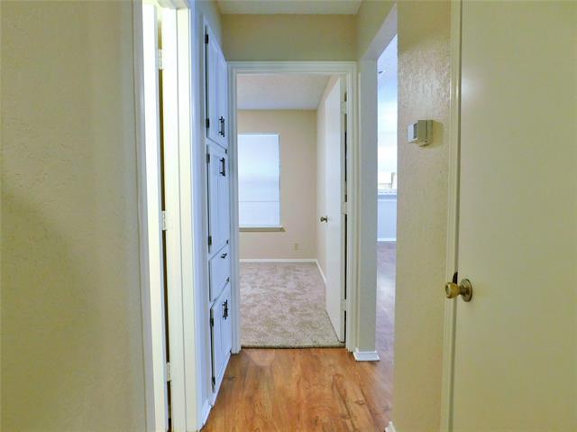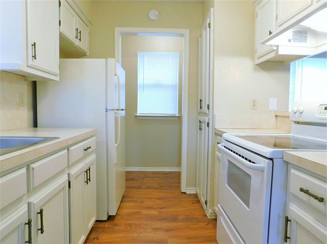 Clean, one-story, two bedroom, two full bath duplex in North Denton. Large open kitchen and living room. Hard surface flooring throughout living areas for easy cleanup, and carpet in both bedrooms. This home features a wood-burning fireplace, ceiling fans, and covered parking. Refrigerator included. Easy access to the downtown Denton square, University Drive (380) and Loop 288.
