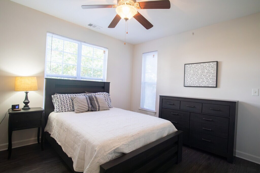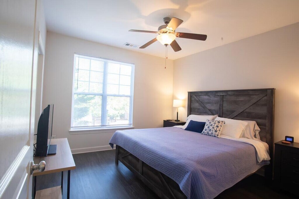 Welcome to your haven of modern luxury at The Park at Crossroads Plaza in Cary, North Carolina. This meticulously crafted two-bedroom furnished apartment offers a sanctuary of comfort and convenience, where every detail is designed to elevate your lifestyle. Step into spacious elegance with over 1,350 square feet of meticulously designed living space that exudes sophistication and style at every turn. Retreat to serenity in the plush king-size beds, ensuring a restful night’s sleep in hypoallergenic comfort, with zero carpets to ensure a pristine environment for all guests. Unleash your culinary creativity in the fully furnished kitchen, complete with top-of-the-line appliances and supplied kitchen and bath accessories, making meal preparation a breeze. Stay connected and productive with access to the fully equipped business center, providing a seamless blend of work and leisure. Dive into relaxation in the sparkling swimming pool, offering a refreshing escape on warm summer days. Stay active and energized with access to the state-of-the-art fitness center, equipped with premium exercise facilities. Enjoy secure, 24/7 access to Amazon Lockers on-site, offering a convenient solution for receiving and returning packages at your convenience. Enjoy easy access to RTP, I-40, and SAAS, ensuring seamless connectivity and enhancing your urban lifestyle. Explore a plethora of dining, shopping, and entertainment options at Crossroads Plaza, a large outdoor shopping mall with everything you could want. Embrace the beauty of the outdoors with convenient access to nearby walking trails and serene lakes perfect for tranquil strolls and moments of serenity. Stay connected and productive with complimentary high-speed internet access. Enjoy a variety of entertainment options with included streaming services, ensuring endless entertainment possibilities. Experience ultimate convenience with the in-unit washer/dryer, making laundry days a breeze.