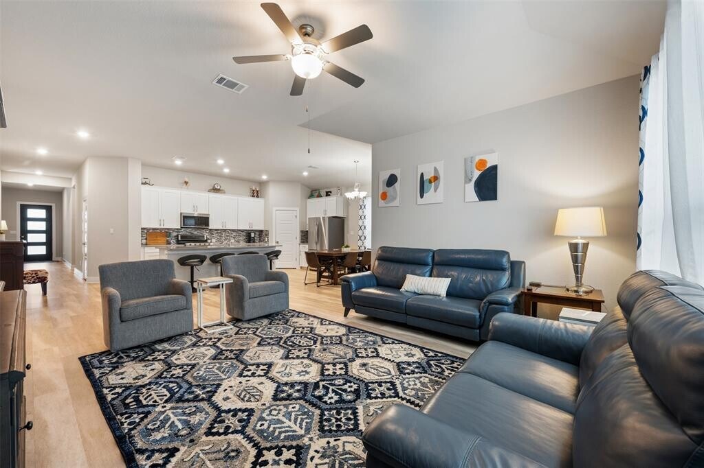 Step into this better-than-new single-story beauty in the highly desirable and centrally located Water Oak community. It is available furnished for an additional fee. Inquire with listing agent. From the moment you walk in, you’re greeted by an open living concept that seamlessly blends comfort and style. The heart of the home is a spacious kitchen featuring a double oven, 5-burner gas cooktop, walk-in pantry, and a perfect view of the generously sized living room—ideal for everyday living and entertaining. The primary suite offers a peaceful retreat with a walk-in closet, dual vanities, soaking tub, and separate shower, while the Jack & Jill bathroom and abundant storage add both convenience and functionality. Thoughtfully designed with upgraded energy-efficient features, this home boasts a fresh air management system, upgraded electronic thermostat, dual flush toilets, flow-smart shower heads, spray foam insulation, tankless water heater, water softener, and whole-house water filtration system. Outside, enjoy the large extended patio with beautiful landscape masonry accents. With its smart layout, premium finishes, and impressive energy savings, this home is sure to delight even the most discerning buyer.