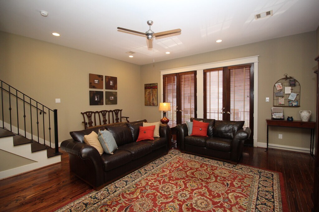 Faron Daigle3 bedrooms 3.5 bathroom, 3 story townhome w/ private driveway. Hardwood floors throughout. First level w/ guest bedroom & full bathroom. Kitchen w/ stainless steel appliances, undermount sink, granite countertops, stone backsplash, wood floors, updated lighting & large pantry. Spacious family room open to the kitchen & dining area. Primary bedroom w/ recessed lighting, sitting area, French doors & walk-in closet. Relaxing primary bath w/ dual sinks, tiled shower, tile floors, & spacious tub.
