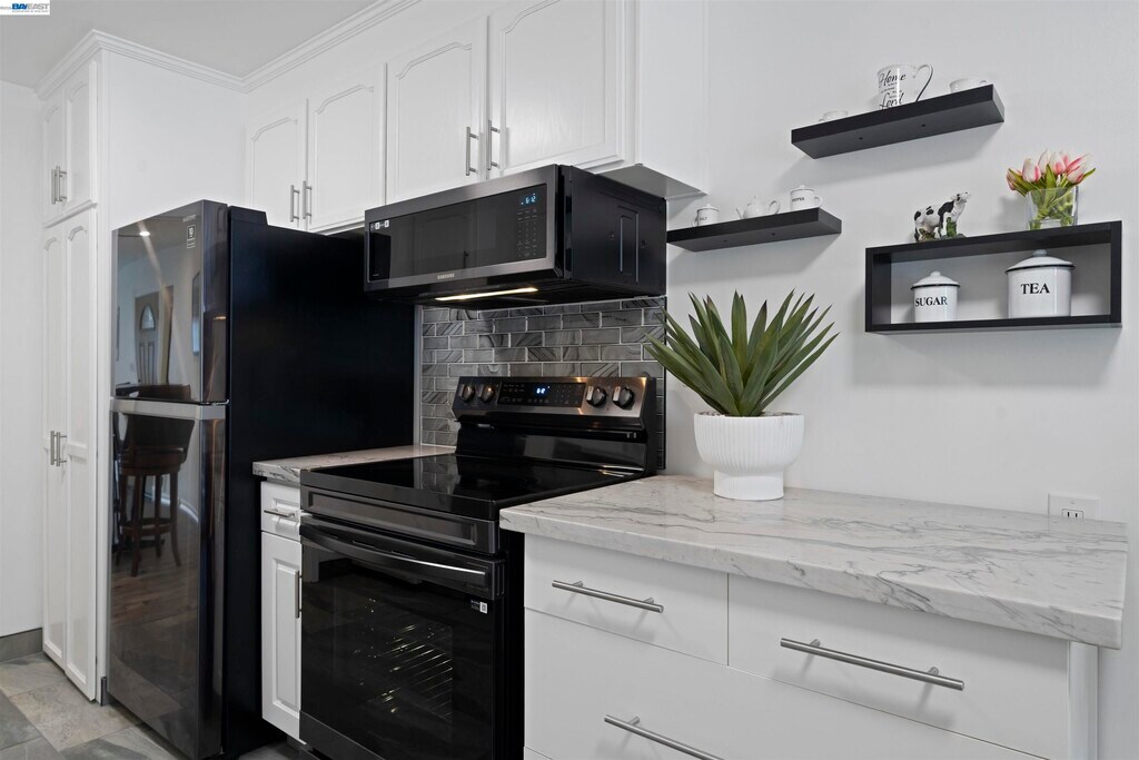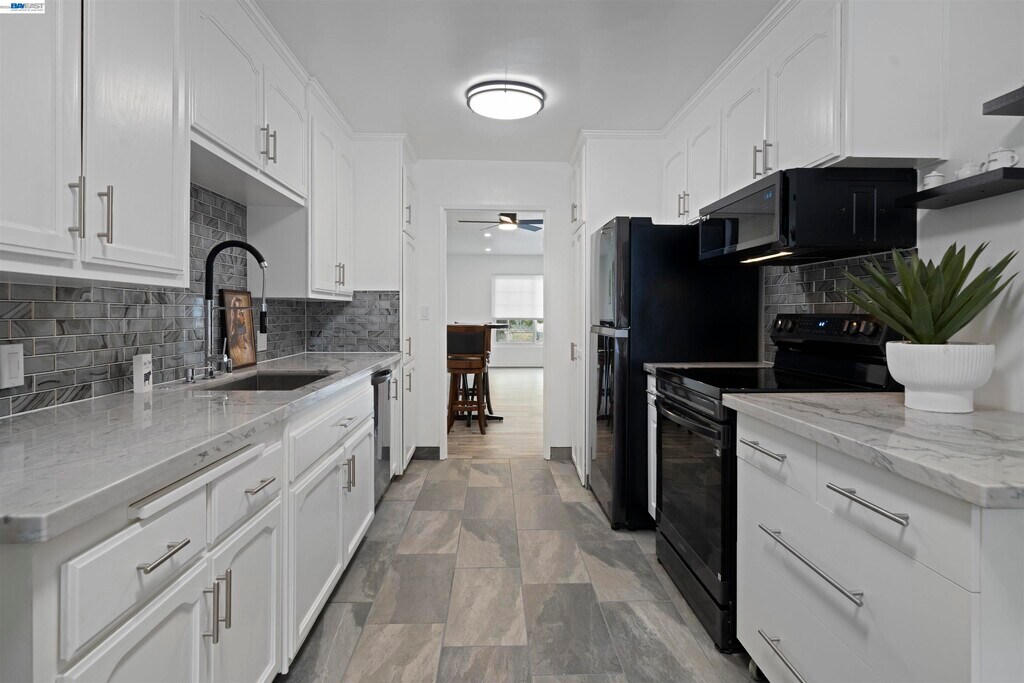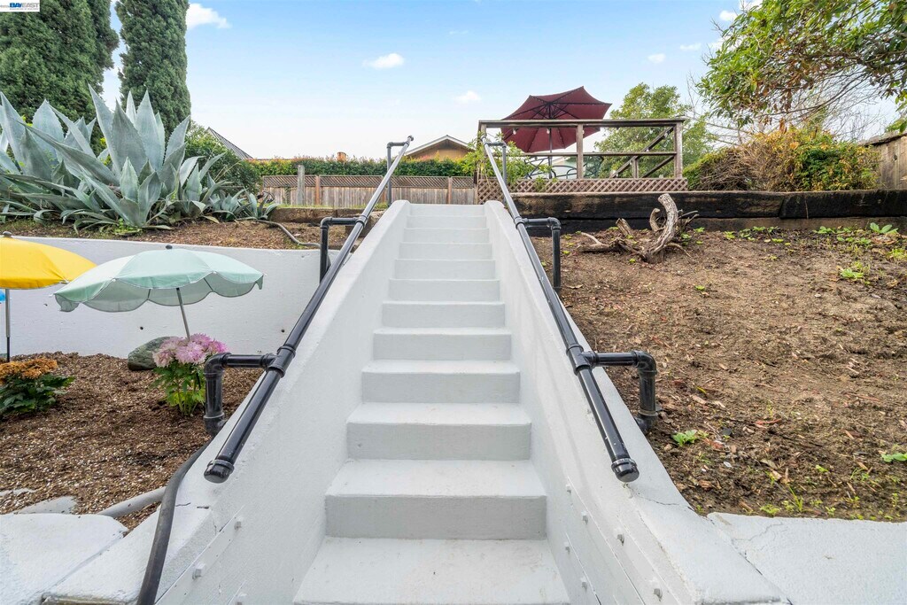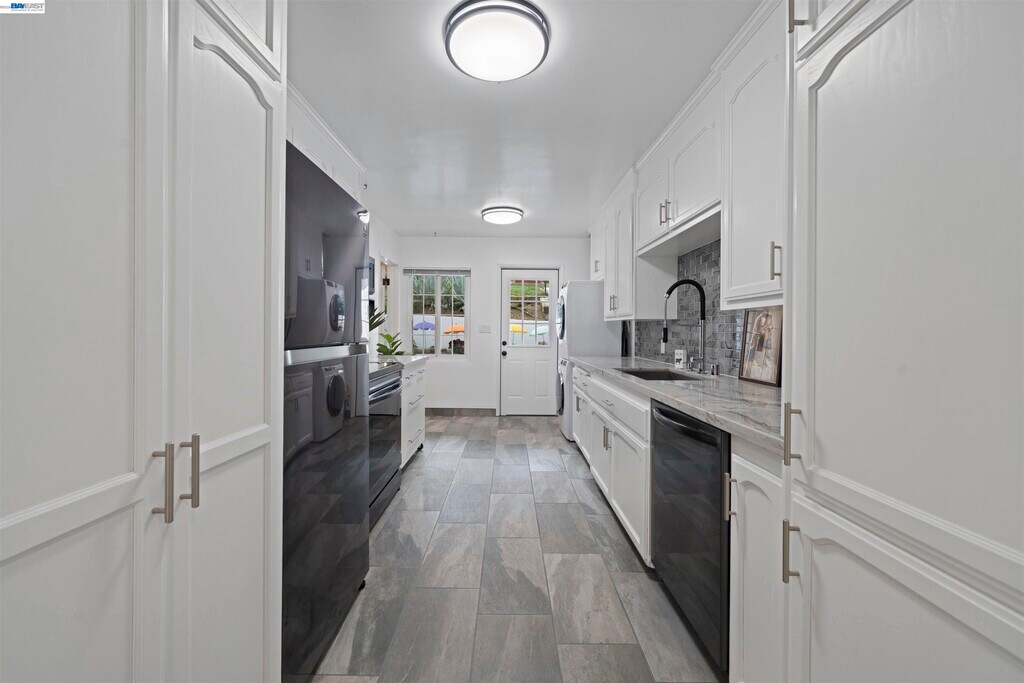 Welcome to 22123 Main Street! This beautifully renovated duplex unit is located in the heart of the San Francisco Bay Area,on Hayward's Historic Main Street. This two-bedroom,one-bath unit features modern luxury vinyl plank flooring,recessed LED lighting with custom fan and dimmer control,a kitchen boasting quartzite granite countertops with a custom undermount stainless steel sink,glass backsplash,and black stainless steel Samsung smart appliances,plus a stackable washer and dryer. The bathroom rocks custom subway tile straight out of nineteen hundreds New York,tub-to-ceiling with jet-black grout,a sleek niche,and barn doors over your deep soaker tub. Enjoy stunning views from the backyard deck,which features a lush lawn and plants. The unit is perfectly located next to Safeway,Starbucks,Sourdough,Habit Burger,FedEx,Chase Bank,City Sports Gym,and easy access to the 238/580/880 connectors,as well as BART. Commuting is a breeze. This desirable duplex unit with private two-car garage awaits you and is ready for you to make it home!