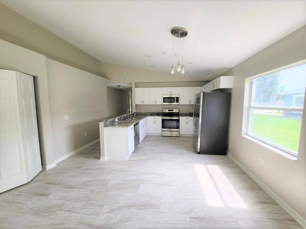 Located on a cal-de-sac steps away from Bell Lake this 4 bedroom 2 bath home is a must see! Fresh exterior paint and a cute front porch will immediately make you feel right at home! As you step inside you will enter the formal living room,which could be used as a sitting area,play area,or an office. Down the hall to the left is one of the 4 bedrooms,to the right 2 bedrooms,and the main bathroom. As you continue,you will enter the spacious kitchen/living space. This fully updated kitchen features granite countertops,all new cabinetry,stainless steel appliances,breakfast bar,and a pantry for additional storage. There is room for a table before entering the open and roomy family room. Large glass sliding doors allow for ample natural light and lead to the concrete patio and back yard. The master bedroom is situated at the back of the home and features ample closet space,ceiling fan,sliding glass doors to the back patio,and an ensuite master bathroom! Both bathrooms have tub/shower combos,granite countertops and new vanities. Newer tile floors. This house is ready to be your home! Washer and Dryer hook-ups are located in the one car garage at the front of the home. Professionally Managed by Dennis Property Management. Review tenant criteria and application on Dennis Property Management's website prior to scheduling a tour. $75 App Fee/Adult,First Months Rent,Security Deposit Equal to One Month's Rent,$75 Tenant Annual Processing Fee Per Household After Acceptance,Renters Insurance Required. MLS# TB8449622
