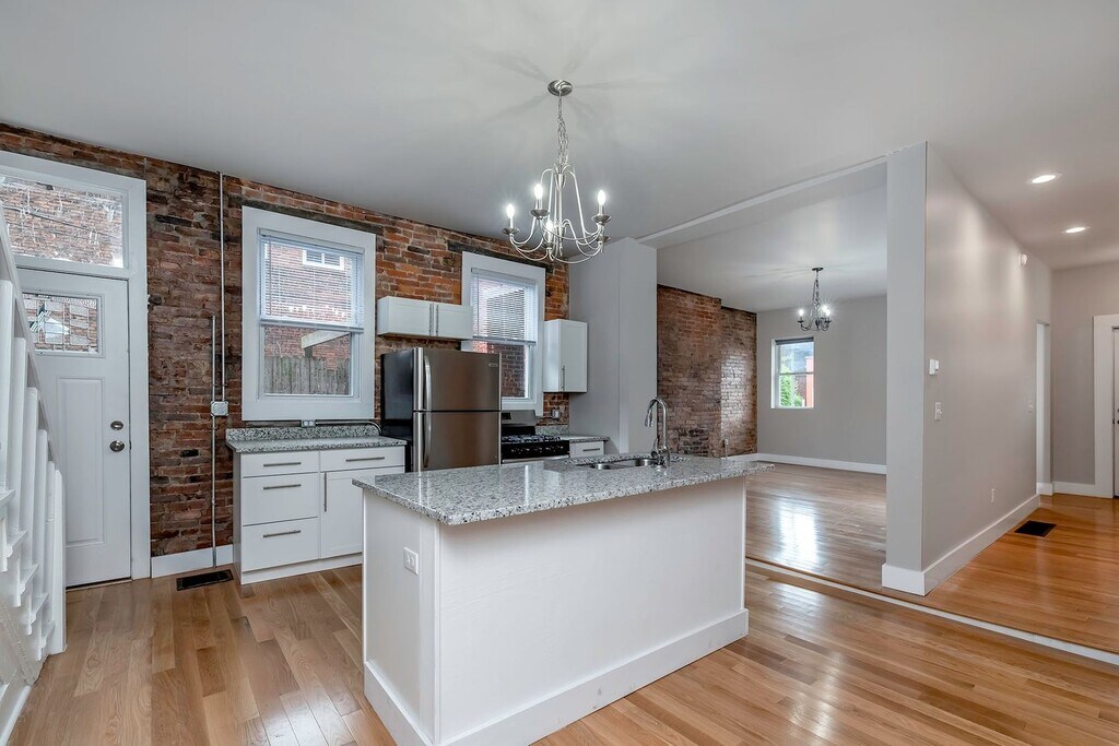 Three floor house was just completely remodeled last year. 1st floor boasts wood flooring, white cabinets, stainless appliances, a full bath and one large bedroom. The 2nd floor has three large bedrooms and a 2nd full bath. 3rd floor has 5th bedroom and there is also a bonus room which could be used as a 2nd living room or cool hang out. Basement with full size washer/dryers and room for storage!