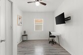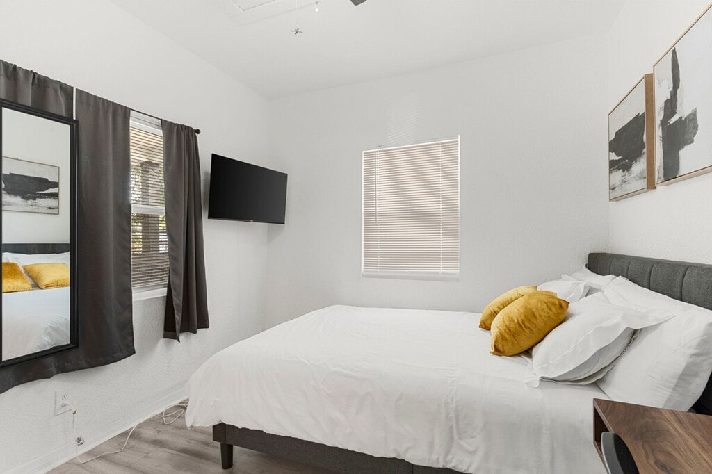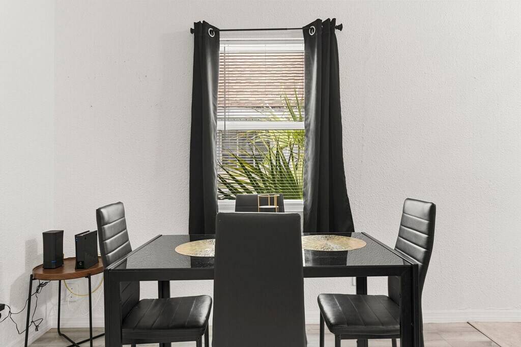 Feel at home in this charming single-story apartment featuring two bedrooms and one bathroom. The residence offers a king-size bed, a queen-size bed, and a sofa bed, making it ideal for a variety of guests. Enjoy the convenience of a washer and dryer, a fully equipped kitchen, and a dining set. Relax in the cozy living area with three smart TVs or unwind on the front porch and backyard. With free parking and self-check-in, your stay is hassle-free. The kitchen is fully equipped with a full-size fridge, a 4-burner stove, a microwave, an oven, an air fryer, a blender, and all necessary cookware. Enjoy your meals with the provided seasoning, coffee maker, and drinking and wine glasses. Each bedroom is equipped with a desk and chair, perfect for work or study, and high-speed WiFi is available throughout the apartment. Pets are welcome with a non-refundable fee of $150 per pet. Enjoy the convenience of free parking during your stay. Located conveniently close to Tampa's attractions, this apartment is just 1 mile from Ybor, 2.4 miles from Armature Works and Downtown Tampa, and 2.5 miles from the Florida Aquarium. Sports and entertainment venues like Amalie Arena and Raymond James Stadium are within a short drive, as are the University of Tampa and the University of South Florida. The Tampa International Airport is only 7.7 miles away, making travel easy. The apartment is pet-friendly and offers self check-in with a smart lock. Blackout curtains are provided for your comfort. Each bedroom is equipped with a desk and chair, providing a comfortable space for remote work. High-speed WiFi ensures you stay connected throughout your stay. [SI]