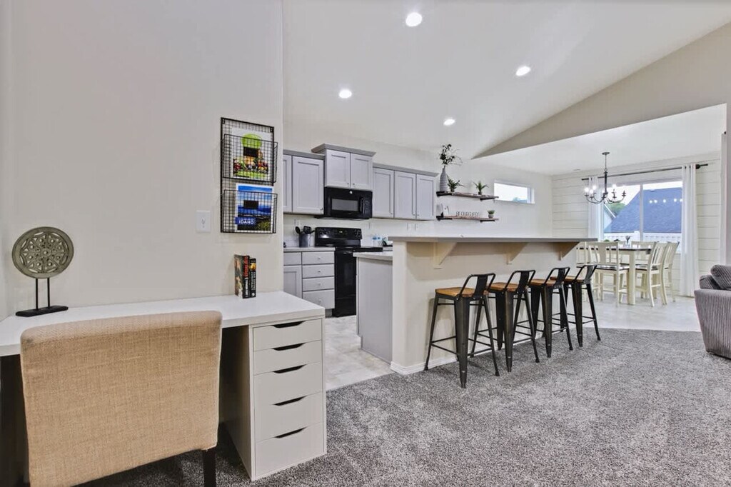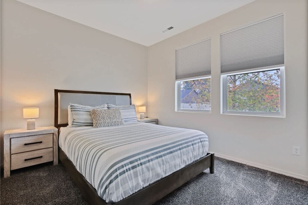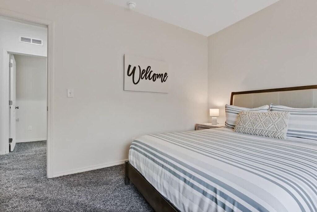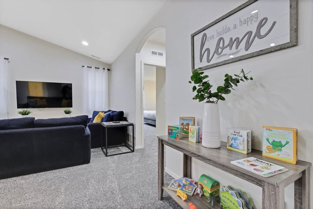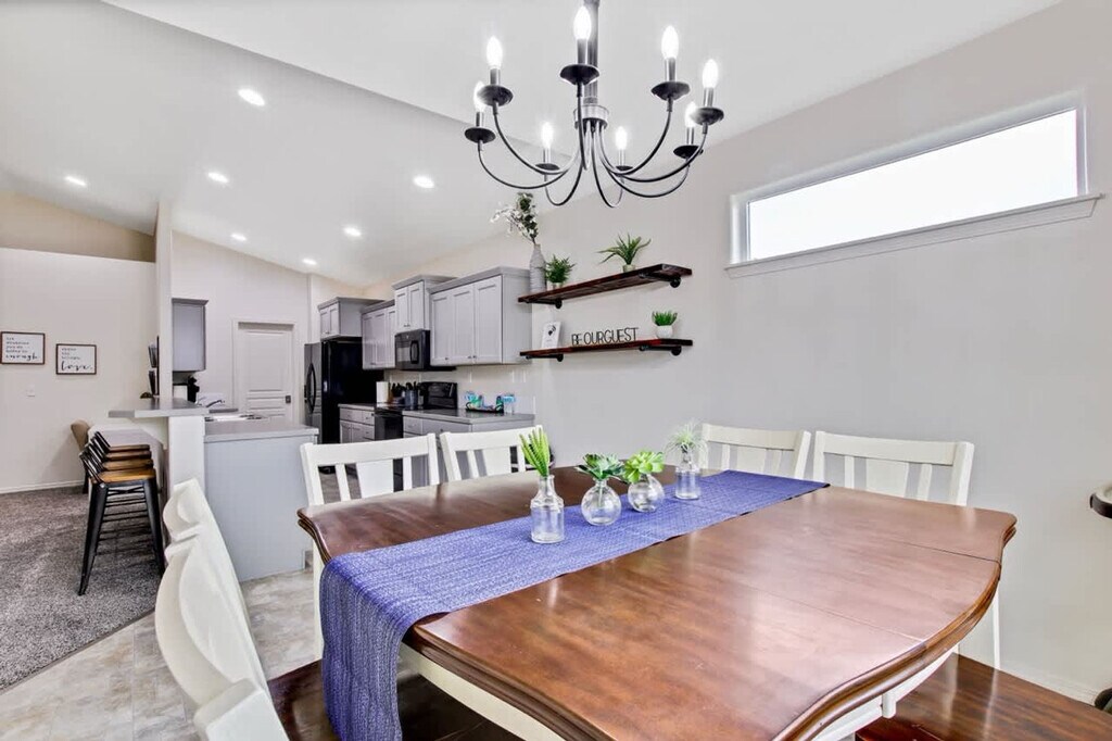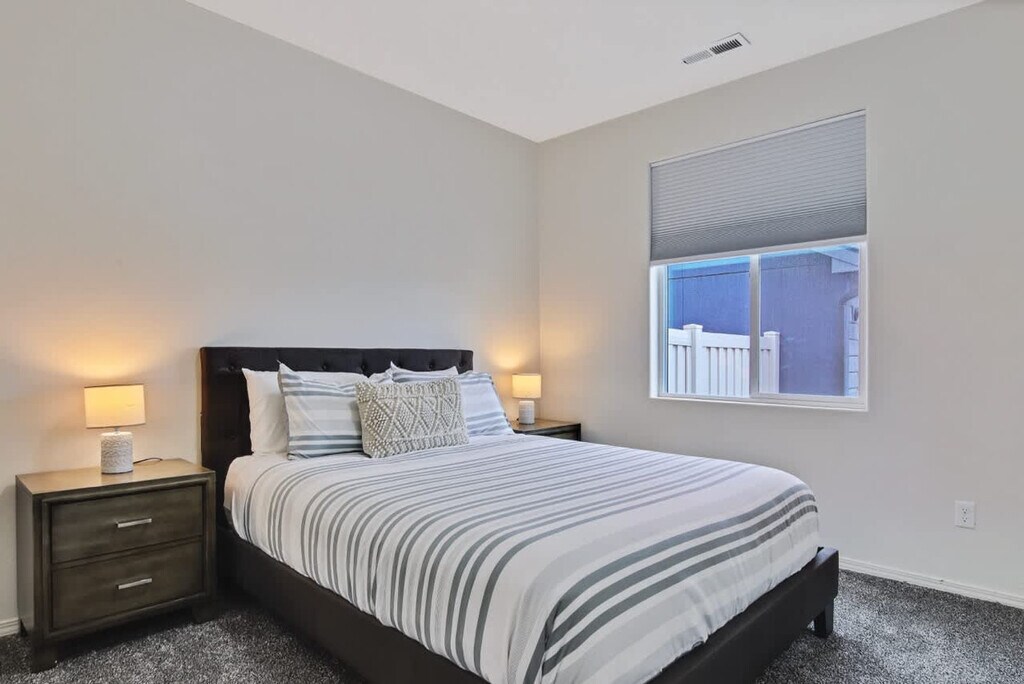 Feel at home in this spa-like 4-bedroom retreat in Nampa. This newer, fully furnished home offers a comfortable and modern living space. This home features a fully equipped kitchen, modern décor with a navy and white palette, hotel-grade linens and plush towels, central heat and AC, and in-home laundry. Entertainment is provided by a 65" Samsung Smart TV with access to Netflix, Hulu, and Prime Video. The family-friendly set-up includes kids’ dishes, books, and toys. Also included is a Pack ’n Play and an additional air bed. Up to 2 dogs are allowed with a fee of $50 for 1 dog or $100 for 2 dogs, collected post-booking during the digital check-in process. Early check-in or late check-out can be requested through the digital guestbook, subject to availability and a small fee. Tucked in a quiet, private neighborhood, this home is centrally located in Nampa. This is a smoke-free home with no smoking, vaping, or recreational drug use allowed. Violations may result in additional cleaning fees. City regulations require quiet hours beginning at 10:00 PM. Please be mindful of noise levels outdoors and in common areas during this time to ensure a peaceful environment for our neighbors. Exterior cameras are in place for safety and to help confirm guest count. Guests are required to digitally agree and sign house rules and a rental agreement which will be emailed once booking is received. Pet damages are not covered by the pet fee. [SI]