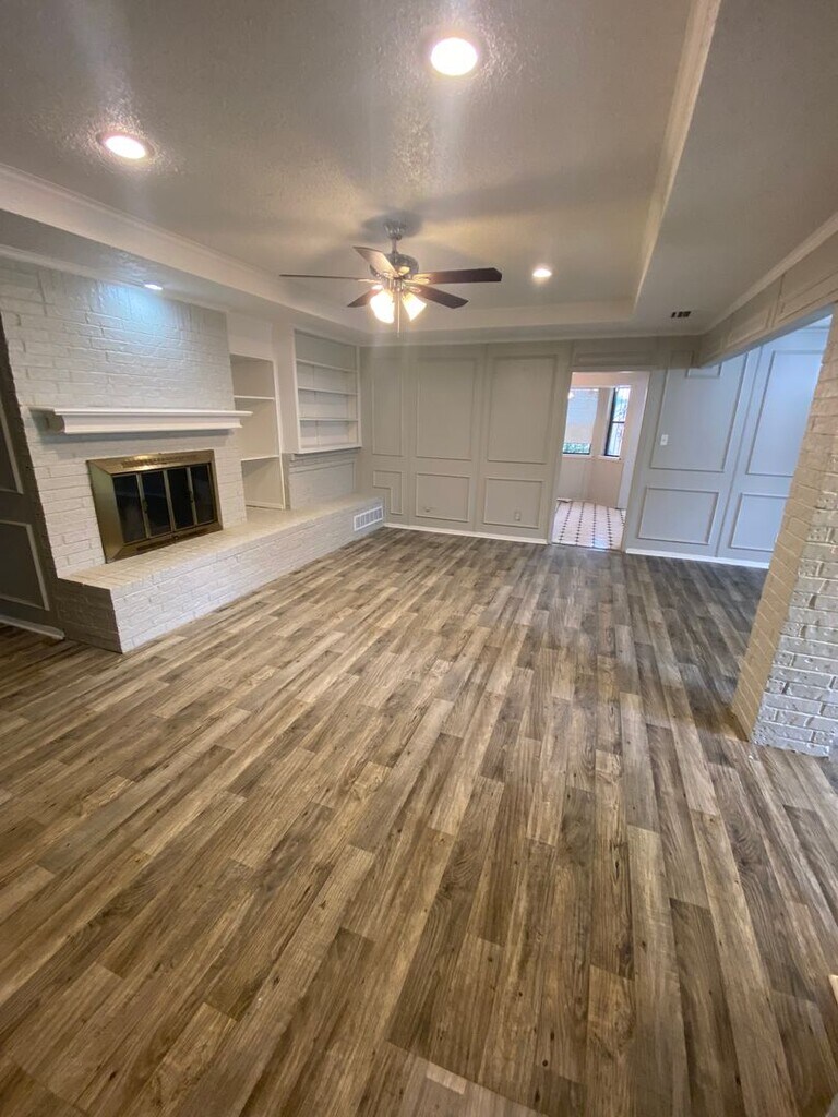 Step into this lovely home! Inside, you'll find a bright and spacious living area with beautiful flooring and a cozy fireplace for those chilly evenings. The kitchen is stunning, with matching appliances, wooden cabinets, and modern countertops. The bedrooms are roomy with plenty of natural light, and the bathrooms are stylish and well-equipped. Outside, there's a fenced backyard with a charming patio, perfect for hosting get-togethers or simply unwinding. Don't miss the chance to make this your home - apply today!