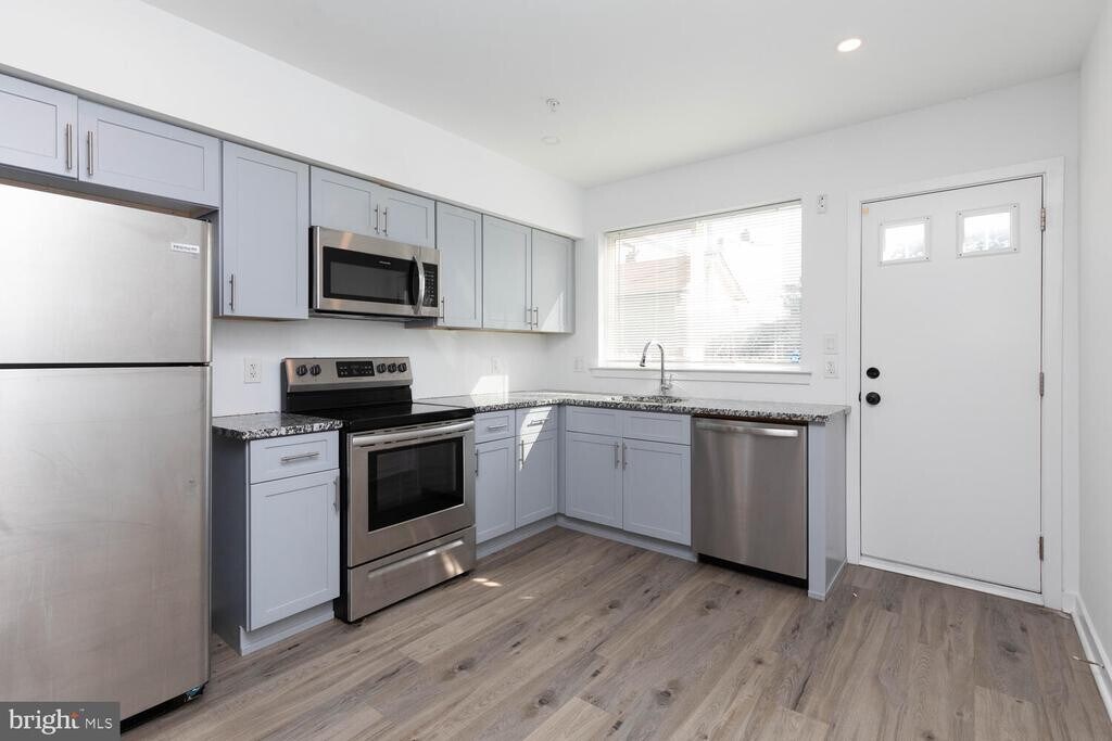 It's a contemporary town home on a quiet street in the Norris Square neighborhood; close to the park! Upon entering you will be greeted by the fabulous, natural light from front to back. The modern kitchen is adorned with natural stone an is equipped with stainless steal appliances. Through the back door you’ll find a private, enclosed patio. On the second floor you’ll find two bedrooms with ample closet space in each room and a beautifully finished hall bathroom with a shower/tub combo. The third floor entire third floor is the location of a primary suite with spacious closet space, double sink vanity and a shiny, large shower. Up another set of stairs you’ll find a large 'double' sided rooftop deck with 180 degree views and enough room for dining and grilling with your friends and family. Last but not least is the fully finished basement suite offering an additional entertainment/flex space, laundry, half bath, and additional storage.