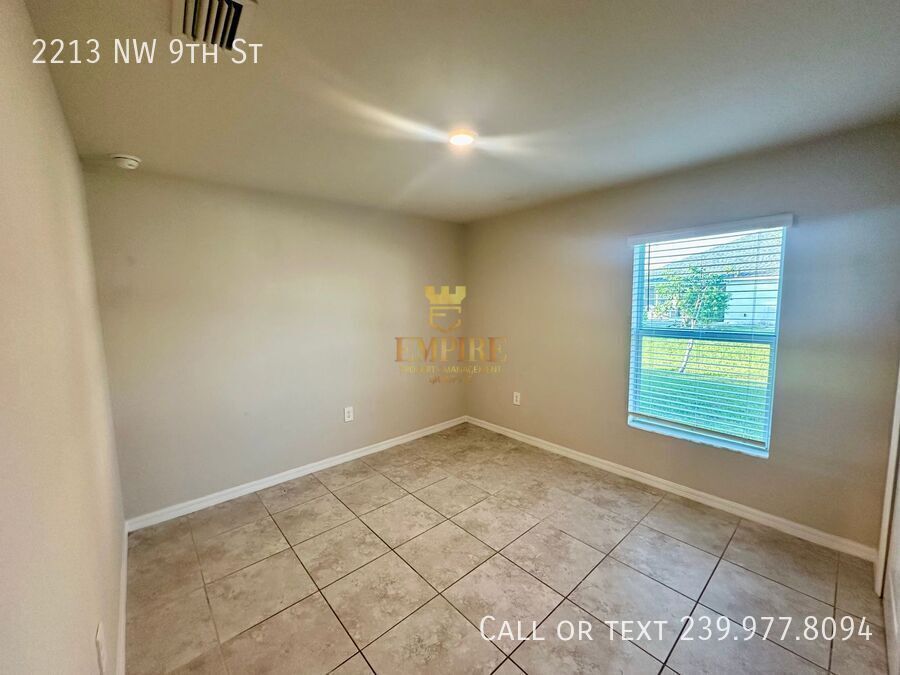 Welcome to this beautiful 4-bedroom, 2-bathroom home located in the NW Cape Coral, FL. The screened lanai offers a perfect space for relaxation, while the split bedrooms ensure privacy. The primary bathroom is equipped with dual walk-in showers and sinks, and includes a walk-in closet. The paver driveway adds an elegant touch to the exterior. This home is a perfect blend of style and functionality, offering a comfortable and convenient lifestyle. UTILITIES/SERVICES INCLUDED: Trash, Salt, Lawn AMENITIES INCLUDED: Washer and dryer hookup APPLIANCES INCLUDED: Fridge, microwave, dishwasher, range PARKING: 2 Car Garage/Driveway (no parking in the grass) PET RESTRICTIONS: With approval through our Pet Screening GENERAL REQUIREMENTS: + Applicants must be move in ready within 2 weeks + Application fee is $75 per adult + Average credit score of applicants must be a minimum of 600 + Combined monthly income must be at least 2.5x the rent amount + Subject to Credit, Criminal and Eviction searches + Security Deposit may range from 1-2.5x the monthly rent, based on good credit and rental history, at owner’s discretion + In addition to the rent, we require renters insurance that we can provide for $15 per month + All applications submitted must also include a submission to PetScreening + All information provided is considered reliable, however not guaranteed and is subject to change To SCHEDULE A VIEWING, TEXT: 239*933*2052 Please visit our site for the detailed application requirements: 2 Car Garage Dual Showers Dual Sinks Lawn Care Paver Driveway Salt Service Screened Lanai Split Bedrooms Trash Walk In Closets Walk In Shower Washer/Dryer Hook Ups