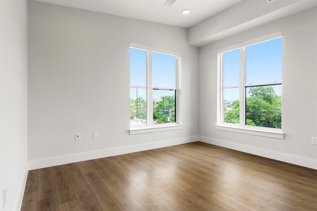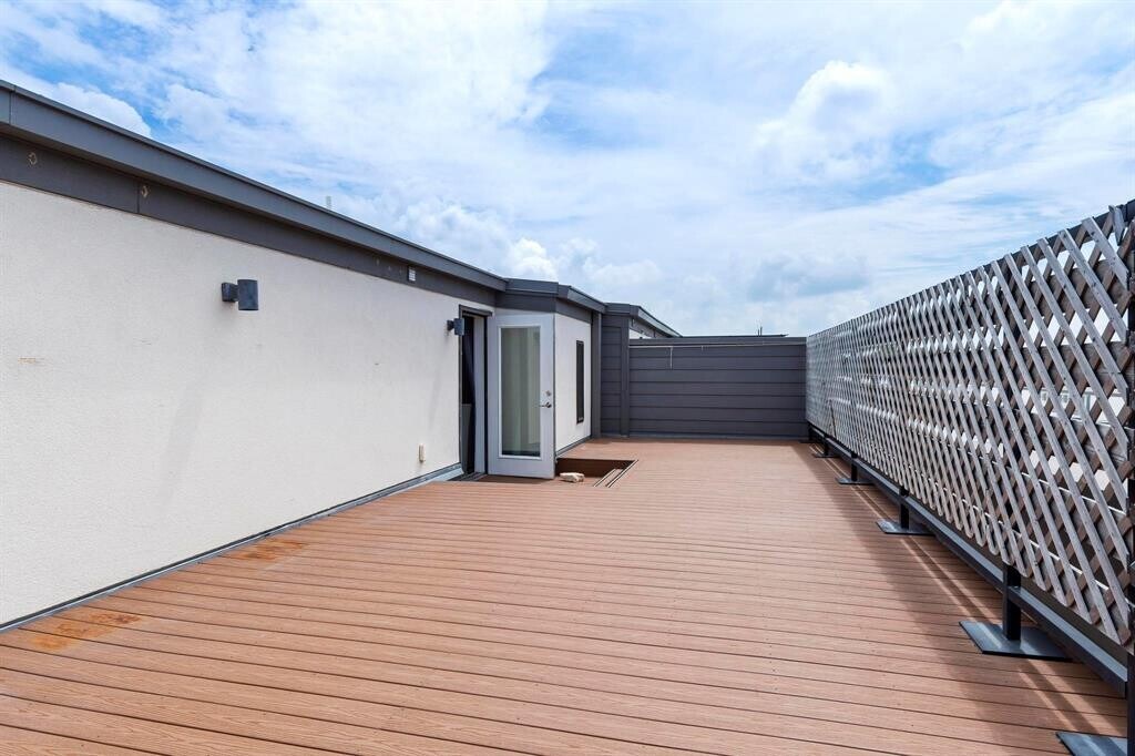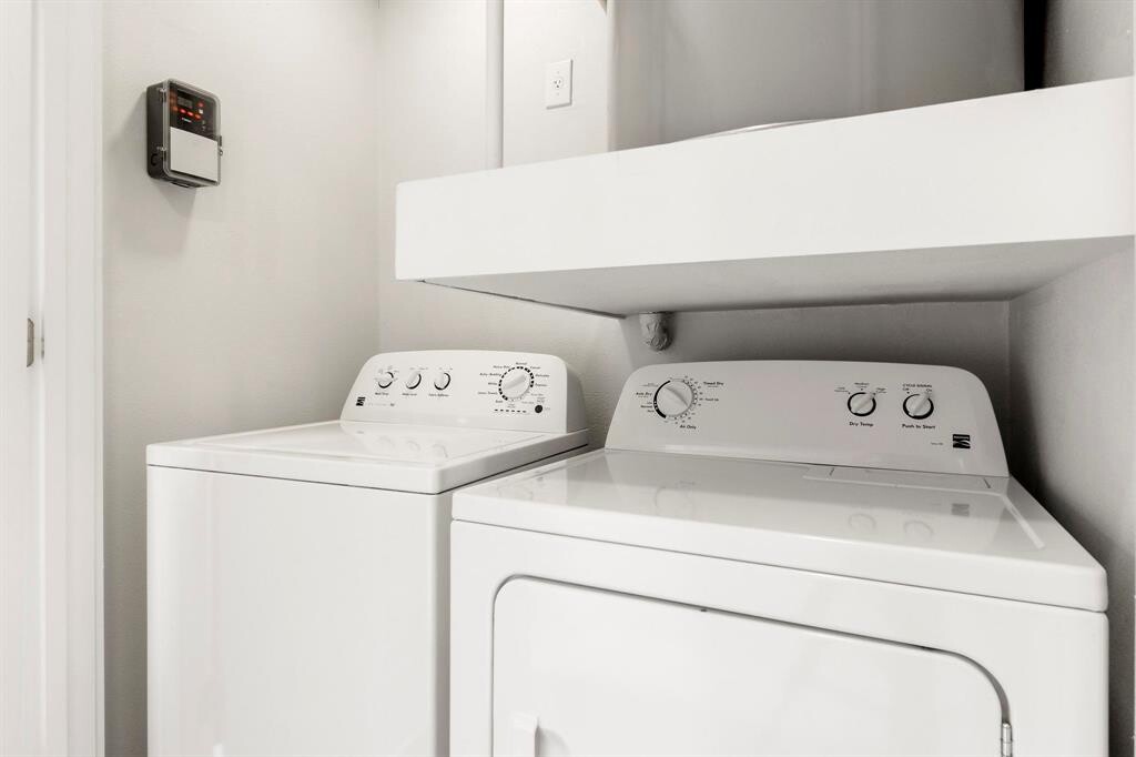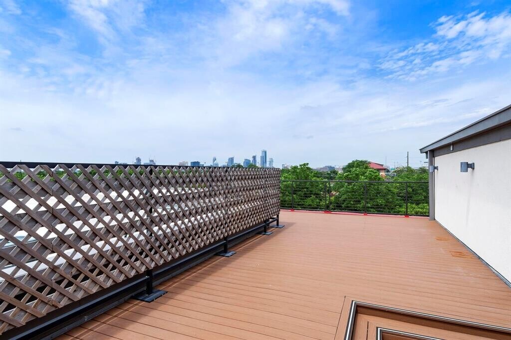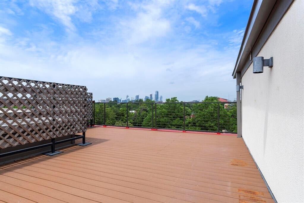 This luxurious condo features a multi-level floor plan where the kitchen, dining and livingroom areas are on the main level. On the second level you will find both the primary and secondary bedrooms which feature en suite full size bathrooms and walk in closets, the laundry closet that comes equipped with a washer and dryer and a large private rooftop deck with amazing views of the Austin skyline!