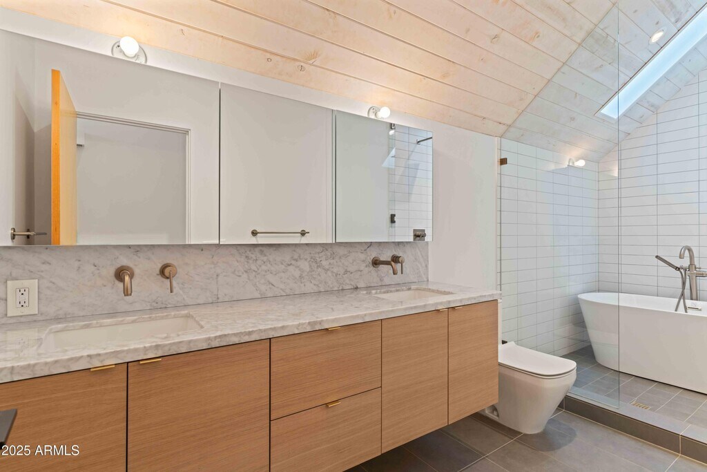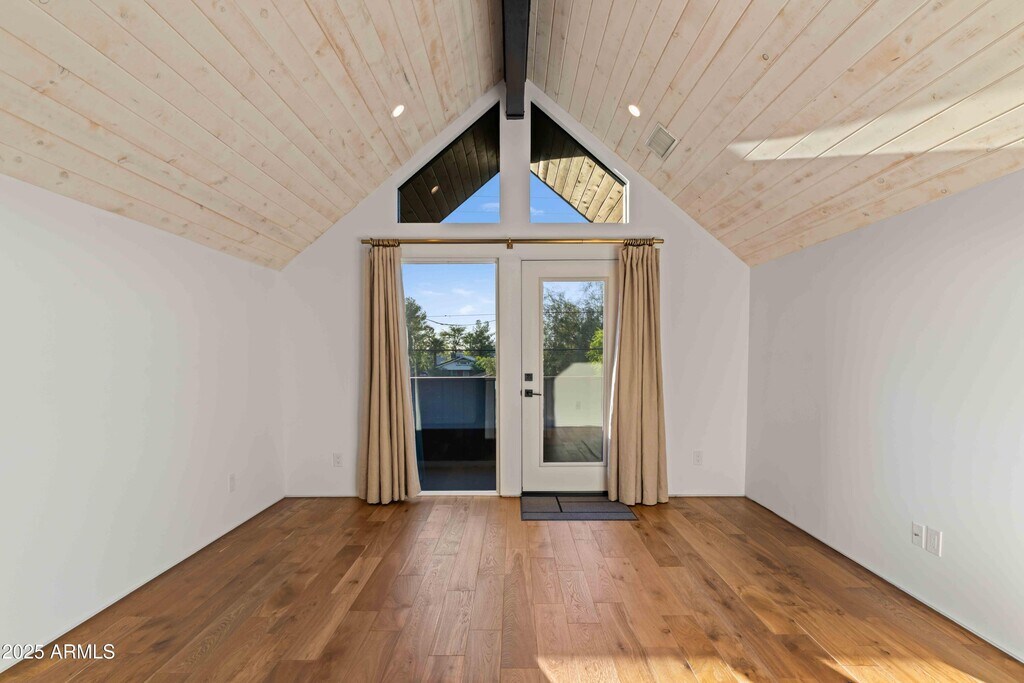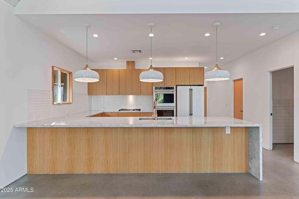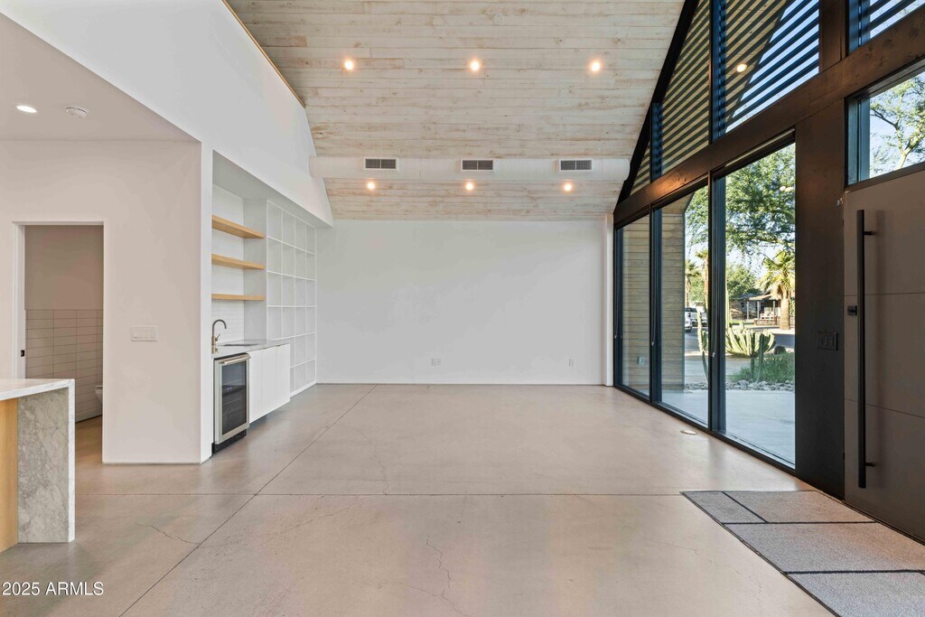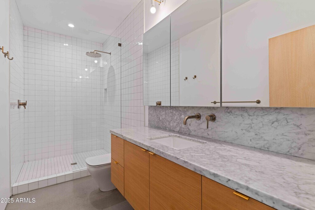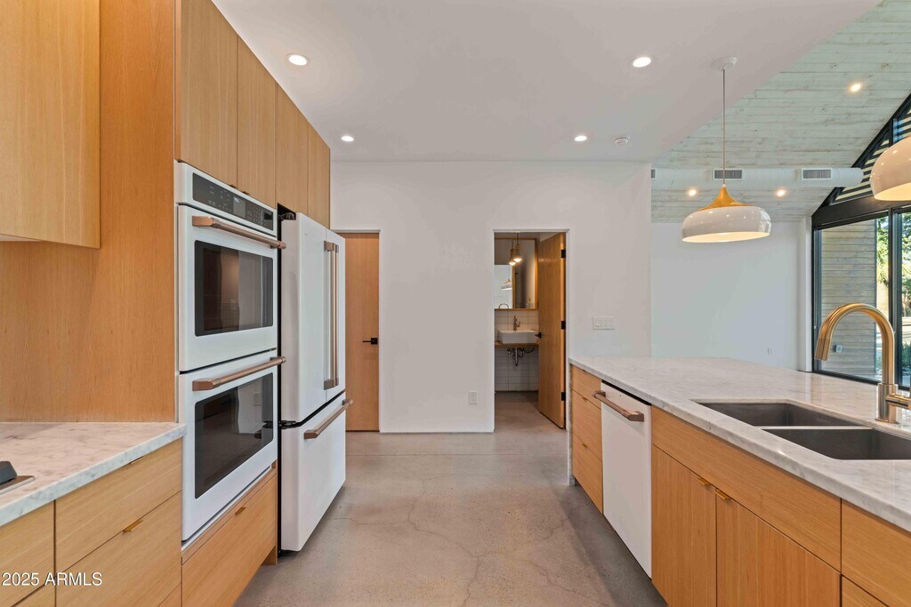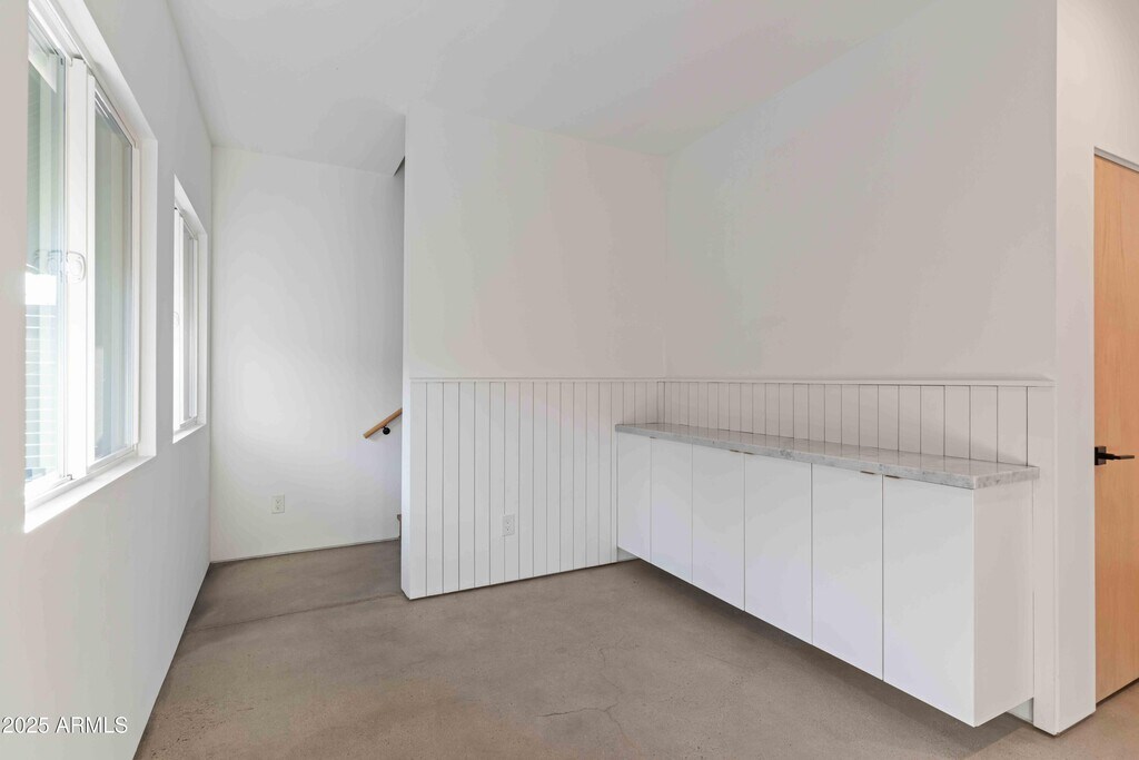 A truly one-of-a-kind Scandinavian modern residence,envisioned and crafted by renowned designer Joel Contreras. Perfectly positioned on one of the most sought-after streets in the ''historically modern'' Coronado Historic District,every detail of this home was executed with precision and care. Soaring 20-foot vaulted ceilings create a dramatic first impression,complemented by custom white oak cabinetry and marble countertops throughout. The interior showcases engineered oak hardwood flooring upstairs and polished concrete floors downstairs,paired with designer lighting and plumbing fixtures for a striking contemporary finish. Additional highlights include a tongue-and-groove ceiling,full spray foam insulation,a corrugated metal roof,and an impressive front façade of dual-pane,argon-insulated glass. In the back,enjoy a versatile covered parking space that doubles as a party-ready pergola. Solid-core white oak doors add warmth and sophistication at every turn. All of this,just a short stroll or bike ride from some of Phoenix's trendiest dining and entertainmenturban living at its absolute finest.