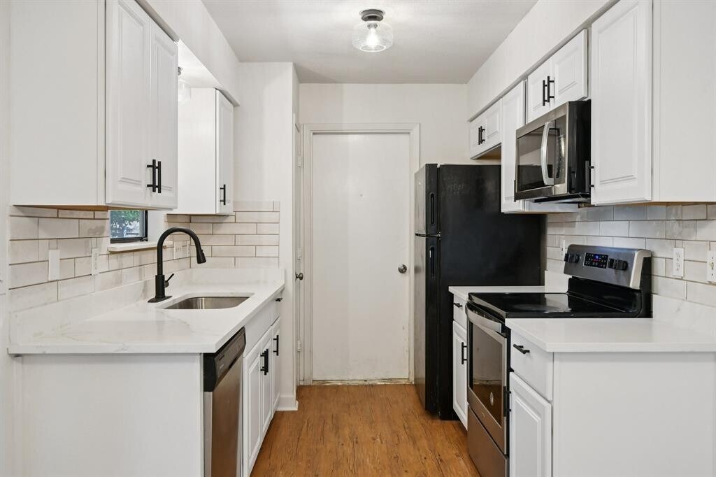 Brand new kitchen and bathroom just installed in this quaint home in quiet neighborhood. Stainless steal appliances, no carpet, screened in porch, large laundry/storage room and great backyard with lovely trees and storage shed. Home comes with fridge included. Just minutes from I35, Georgetown Square and shopping/restaurants. Will work with lower credit if you have good rental history.