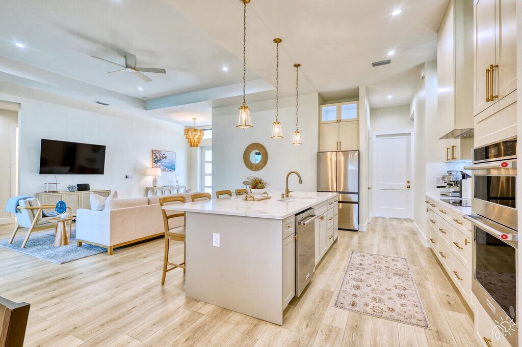 The advertised rate of $6,608/month is the lowest available price, based on a 30 day(s) stay with a move-in date of August 26, 2026. Rates vary depending on the duration of stay, season, and other parameters. For exact pricing and additional pricing components, please visit our website and enter your desired move-in and move-out dates. The rate is applicable when billed upfront; it can be higher if billed in multiple payments. Escape to this newly built, luxurious 4-bedroom home, perfect for families or couples looking to relax in style. Nestled in a serene neighborhood, this modern retreat offers high-end finishes and spacious rooms. Feel at home in this property that comfortably accommodates up to 8 guests. The spacious open floor plan boasts a modern kitchen with top-of-the-line appliances and a cozy living area with large windows letting in natural light. Outside, enjoy a private pool and spa area, perfect for unwinding after a day of exploring. Parking is available for up to 4 vehicles, with easy access to major highways. Uber and Lyft services are readily available. Located in a quiet, upscale neighborhood, this home offers a peaceful retreat while being just minutes from downtown and the beach. Family-friendly parks and top-rated restaurants are just a short drive away. No parties or events are allowed. Quiet hours are from 10 pm to 8 am to respect our neighbors. Booking guests must be at least 23 years old and must accompany the booking party at all times. Only registered guests may be on the property, including the backyard; extra guests will be charged at $50 per person per night. The garage is intended only for storage of luggage and things, and parking or driving a vehicle in the garage is prohibited, with a $500 penalty. Smoking is prohibited on the property, including vaping, with a $550 fine if evidence is found. If evidence of pets is found, a $250 cleaning fee will be applied. Shoes should not be worn throughout the home. If evidence of a party is found, a $550 fee will be assessed. Fireworks are prohibited. Check-in is at 4 PM and check-out is at 11 AM. On Monday and Thursday, please have the garbage and recycling bins to the curb. [SI]
