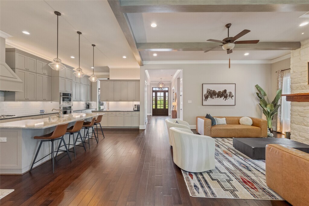 Kevin JohnsonRemarkable home with with elegant finishes and upgrades throughout. There's so much to love; from the front porch with lake views, to the wonderful layout, stunning primary suite, gorgeous kitchen, covered back patio with a fireplace, and private backyard. This house has so many "wow factors". The gorgeous kitchen is open to the breakfast area & the beautiful living room with a fireplace. The primary bedroom is large and elegant, with a primary bath to die for. The primary closet is amazing with direct access to the laundry room. The first floor also features an excellent study, formal dining room, butlers pantry, huge walk in main pantry, an oversized laundry room, and 1/2 bath for guests. Upstairs you find 3 wonderful bedrooms with 3 more full bathrooms, the game/media room, and an extra space for storage or future bed #5. Out back is very private with woods behind the home. Plus, this home already has a whole home generator & is zoned to exceptional schools.