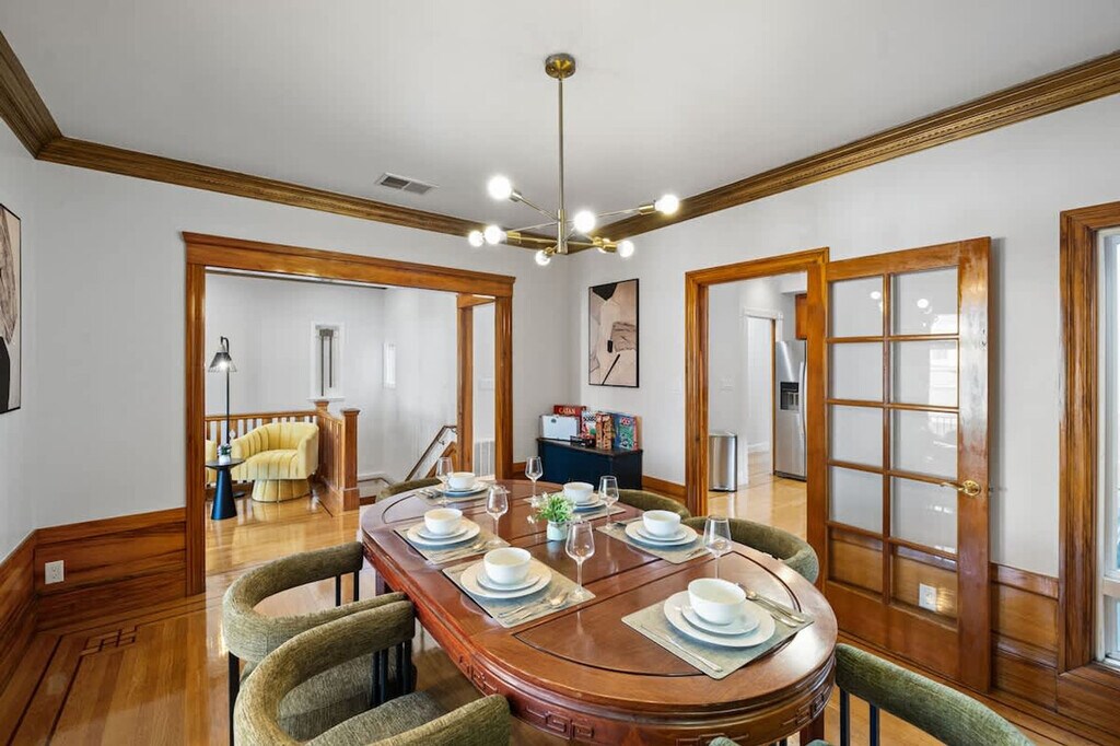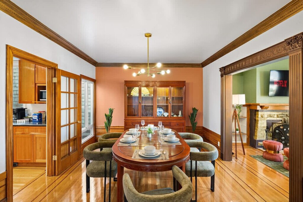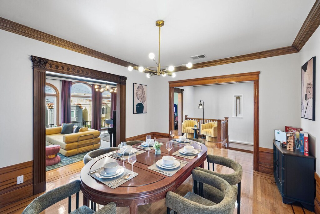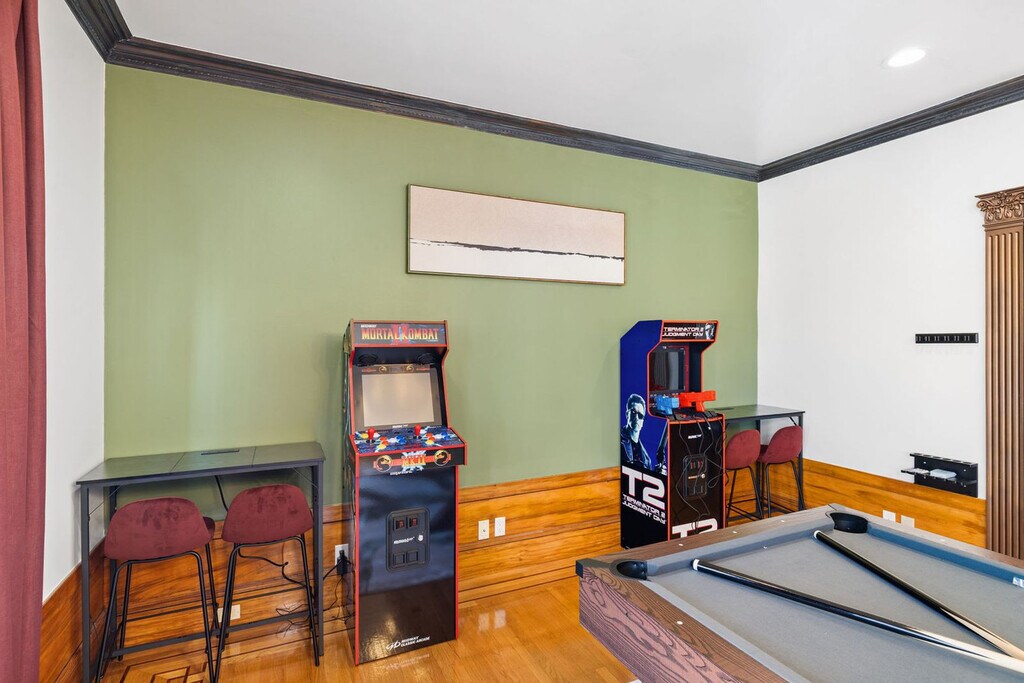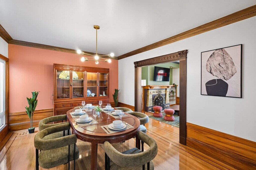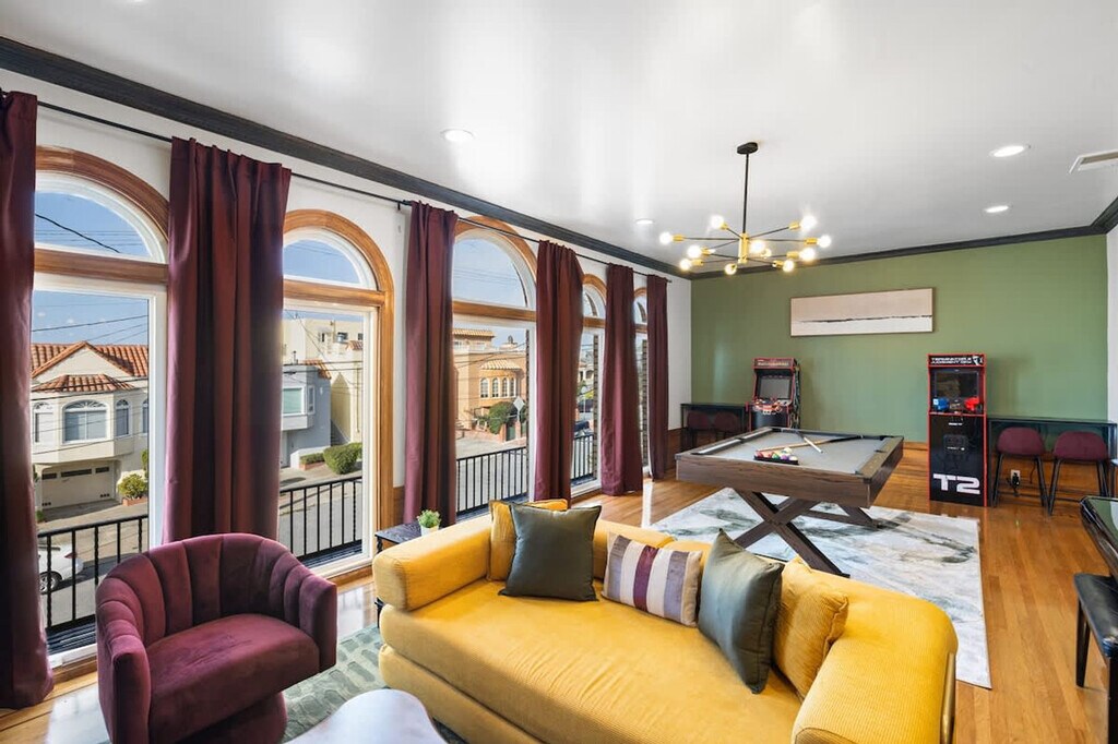 Feel at home in this cozy, playful 4-bedroom home in San Francisco's Inner Sunset. Located on the second floor, this upper-level home is accessible by stairs and offers a retreat for families and groups of up to 12. This spacious home is loaded with entertainment options, including a pool table, Terminator 2 and Mortal Kombat 2 arcade games, and several board games. The fully stocked kitchen offers everything you need for group meals, including an Instant Pot, air fryer, blender, coffee maker, full cookware, and dinnerware set. Relax in the living room with comfortable seating and a king sleeper sofa. Each bedroom has a Smart TV. The fireplace is for display only and does not work. Pets are allowed with a fee of $25 per pet per night, with a maximum of two pets (cats or dogs). Spend your mornings exploring Golden Gate Park (just 5 minutes away), afternoons at Ocean Beach (10 minutes), and evenings gathered around the game table. With easy access to Muni, bus lines, restaurants, cafés, and groceries, you're in one of San Francisco's most convenient and walkable locations. Major attractions include Golden Gate Park (0.9 miles), UCSF Medical Center (1.7 miles), Ocean Beach (3 miles), Haight-Ashbury, SF Zoo, Twin Peaks, Mission District, Downtown/Union Square, Fisherman’s Wharf, Oracle Park (Giants), and Chase Center (Warriors). Quiet hours are between 10 pm and 8 am every day. Noise complaints or any violation of this rule may result in cancellation of booking and removal from the property without refund. There is a strict no-party policy. If there is a party of any kind, the police will be called and everyone will be removed from the property with no refunds. Unauthorized guests are not allowed at the unit, and there is a $100 fine per guest if discovered. Smoking is prohibited without exception on this property. If any signs of smoking are found in the unit or on the premises, a fine of $500 will be imposed. If you are found to have brought pets without prior notification, there will be a $300 fee. If the noise monitors are tampered with, there will be a fee. There is street cleaning in this neighborhood, so you must read and follow street cleaning signs to avoid a parking ticket. Monday through Friday, from 8 am to 6 pm, you have to move the car every 2 hours to avoid a ticket. There are outdoor security cameras covering entrances of the house for security, such as the front door and backyard door. You may be charged extra for cleaning if the property is left in a state that necessitates additional cleaning. Lost or unreturned keys will incur a $500 fee. For delayed checkout, there will be a $500 late checkout fee. Includes a quiet, dedicated work area for remote work or study. [SI]