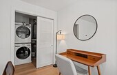 Feel at home in this thoughtfully designed, fully furnished 2-bedroom apartment with 1 bath and 840 square feet of luminous open-plan living. It features soaring ceilings, sleek wood floors, and high-end finishes throughout. This apartment is equipped with premium appliances, a modern remote-access system, and a video intercom for added convenience and security. Just steps from a serene park, this apartment offers the perfect balance of nature and city living. A short 10-15 minute stroll takes you to the vibrant Wisconsin Avenue corridor, where you'll find Whole Foods, Trader Joe’s, charming restaurants, cozy bars, and all your daily essentials. Nestled in the heart of Upper NW, this apartment is the ultimate urban retreat. Parking is available for an additional $10 per day [SI]