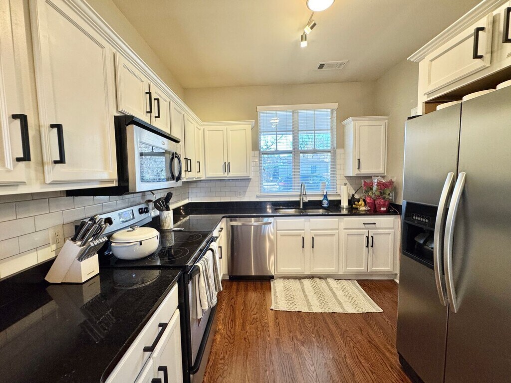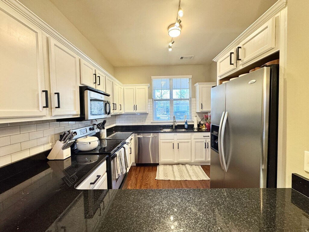 2 bedroom home with en-suite bathrooms. Bedroom upstairs highlighted by large primary bedroom with his/hers closets and remodeled bathroom. Second bedroom has a built out closed and remodeled private bathroom. First floor includes living room, kitchen, 1/2 bath, private patio, and wood floors. Granite and stainless appliances in kitchen. Washer/dryer in unit. Walkable area between 12 South and 8th Ave. Publix Grocery is only a block away. Rent includes two parking spaces, amenities access to clubhouse, fitness center, and pool. Owner will consider small and medium sized dogs (non-shedding).