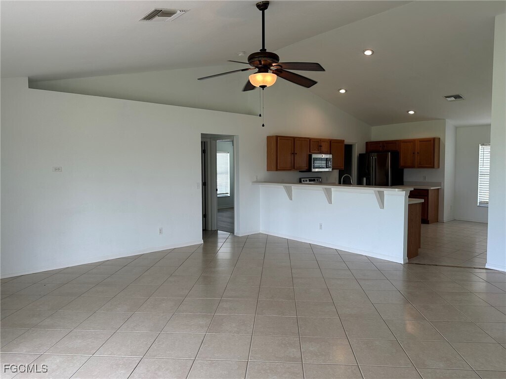 Spacious 4 bedroom,2 bath,2 car garage home for rent in NE Cape Coral. New laminate flooring in the bedrooms. Convenient location. Ready to move in.