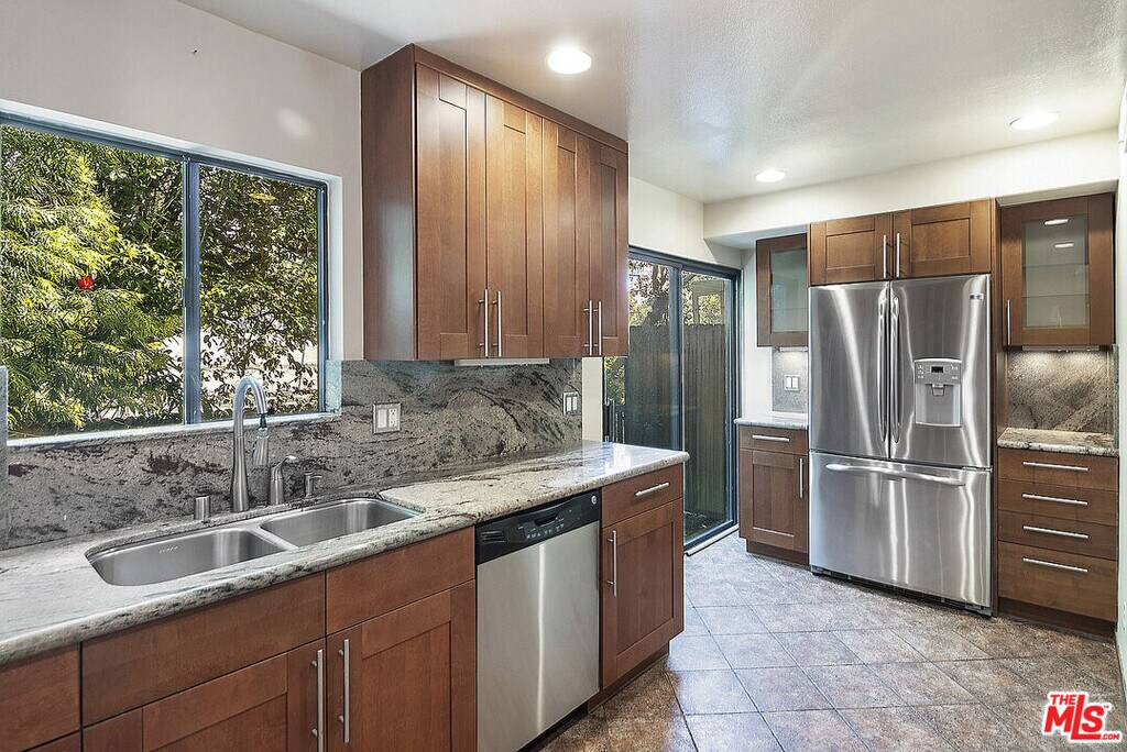 HURRY! This lease has a long history of happy tenants and always leases quickly! Close to everything & in an ideal quiet location, this gated direct-entry 3-bedroom townhome with its HUGE private patio is a fantastic place to call home. You will love the light-filled, open floor plan with beautiful flooring, recessed lighting, high ceilings and cozy fireplace in the living room. Spacious front patio plus RARE back patio (like a small yard!) surrounded by greenery and privacy. The kitchen is gorgeous- tons of cabinets and top quality stainless steel appliances. The main bedroom suite is airy and spacious with vaulted ceilings, private balcony & great closet space. 2 other bedrooms are upstairs with large windows framing peaceful treetop views. There is a large bonus room with inside laundry downstairs off the garage entrance (not included in the sq ftg)- perfect for extra storage. 2-car parking in the gated garage with easy DIRECT entry into the townhome. Pet-friendly building & top Westwood Charter Elementary! Inside Laundry, Central AC/Heat, Lots of Outdoor Space! **Being painted right now and available Tuesday onward!** MLS# 25625917