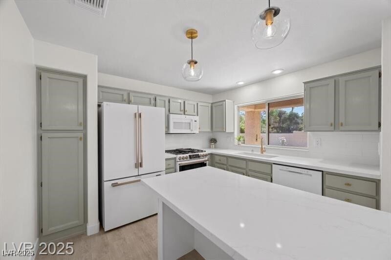 AN AMAZING MUST SEE. READY FOR IMMEDIATE MOVE-IN. A Beautifully Updated "Hawthorne" Townhome in Sun City Summerlin Features a Spacious Open Floor Plan with Split Bedrooms & 2-Baths. This 55+ Community Offers Top-Tier-Amenities: Community Centers, Fitness Centers, 3 Golf Courses, 5 Indoor/ Outdoor Pools, Parks, Pickleball/Tennis Courts, Billiards, MiniGolf, Walking Trails, Restaurants, a Theatre Auditorium, Numerous Social Clubs, Allowing You to Enjoy a Premier Recreational Lifestyle in this Del Webb Community with Breathtaking Golf COurse and Mountain Views. Located Minutes from Downtown Summerlin, Red Rock Casino and the Las Vegas Strip, this Townhome Features Luxury Vinyl Plank Flooring, New Carpet, Fresh Paint, Quartz Countertops, Kitchen Island, Brand-New High-End Appliances, Upgraded Light Fixtures & Master Suite with 2 Closets.