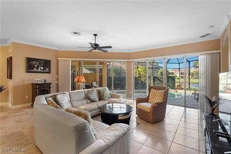 Located in the heart of Estero is Rapallo: A Mediterranean style resort community. This 3/2 villa with over 1996 sq ft of living area the favored of all the villa floorplans because of its openness. Entering the Foyer your eyes will be directed out a wall of sliding doors to the pool and lake with fountains beyond. The kitchen is set up for entertaining with granite countertops stainless steel appliances,pantry and large center island. The villa is tiled throughout. Off the Great Room are two bedrooms separated by a full bath. The Primary bedroom has a large walk in closet and sliding doors out to the pool and Lanai. The en-suite bathroom has two vanity areas with a walk-in shower and a garden tub. The other two bedrooms share a full bath,the one bedroom is set up as a den with sliders out to the pool area. Rapallo is the safest place to be in a hurricane with is 2 year old roofs,impact resistant windows and for this first time in 5 hurricanes lost electricity during Milton.,but only sporadically. Rapallo is an amenity rich community with 5 pools,spa,fitness center,tennis courts,bocce ball,biking and jogging paths,Botanical Gardens,clubhouse with full catering kitchen,Activity Director will keep your calendar full of things to do,Fitness Director,and tennis pro. The best part of Rapallo is walking to the Coconut Point Mall,with extensive restaurants and shopping and soon the new Market Place with Miller Ale House Starbucks and a wine bar and more. and just minutes to the beaches and only 12 miles to the airport. Equal distance to both Naples and Ft Myers.