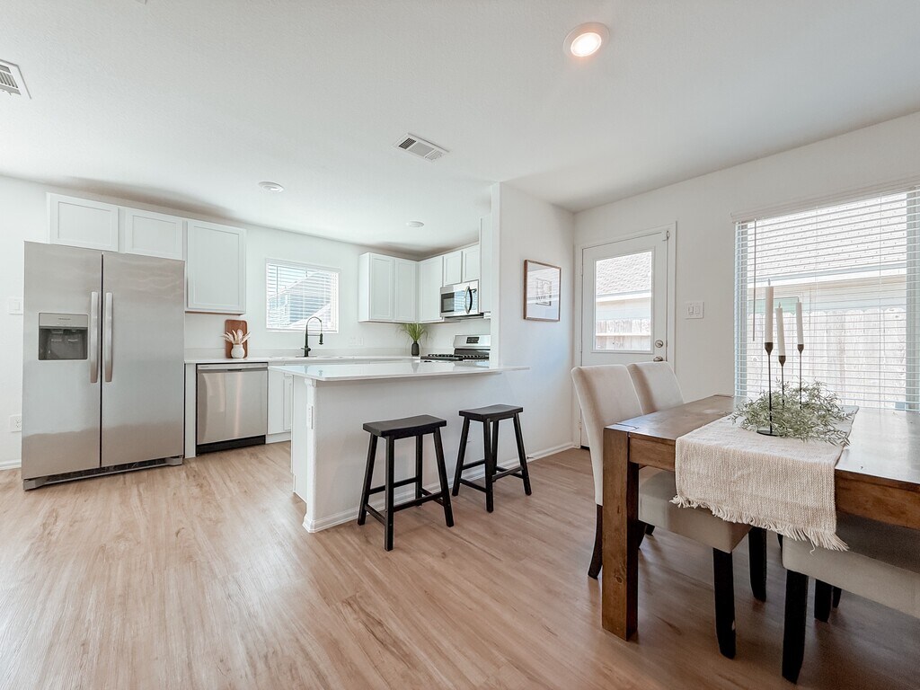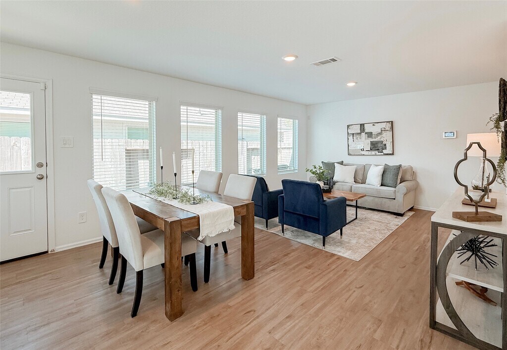 Nestled among towering,whispering pine trees,this beautiful home offers the peaceful lifestyle you've dreamed about!! Designed for everyday family living,the open-concept layout connects the kitchen,breakfast area,and living/dining space so everyone stays connected. The kitchen features quartz countertops,abundant prep space,and sightlines throughout the heart of the home. Luxury vinyl plank flooring adds durability and style for busy households. The primary suite is conveniently located downstairs for privacy and comfort,while upstairs offers three additional bedrooms plus a versatile flex space perfect for a game room,homeschool area,media room,or home office. Step outside to a backyard blank canvas ready for playsets,a garden,or your dream outdoor retreat. Enjoy nearby walking trails,quick access to a plethora of amenities at Valley Ranch's Town Center,and endless fun at Big Rivers Waterpark & The Food Zone just minutes away. MLS# 36149332
