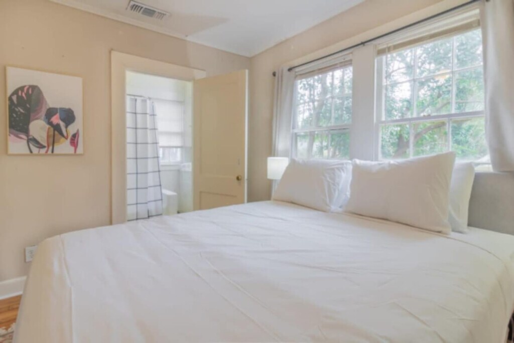 This simple 1-bedroom upstairs apartment in Midtown Columbus, GA is ideal for couples or solo travelers. It features a queen bed, two full-size futons, a full kitchen, bathroom, and free Wi-Fi. Conveniently located near Lake Bottom Park, the Columbus Botanical Gardens, the Coca-Cola Space Science Center, and Fort Moore, this apartment offers professional and real-time photos showing exactly what to expect. Tucked away behind the main house, this upstairs apartment offers a simple, functional place to stay. Access is easy with a gravel driveway leading to the back, and entry is made convenient with a secure digital keypad. Inside, you’ll find everything you need for a modest stay. The living room includes two full-size futons that can sleep two people each, and the kitchen is equipped with the essentials for preparing meals at home. A full bathroom connects the living areas, and the bedroom features a queen bed for a comfortable night’s rest. A pack 'n play/travel crib is available upon request. Pets are welcome with a non-refundable fee and a pack 'n play is available upon request. Located in Historic Midtown Columbus, this apartment puts you close to local highlights while offering a quiet place to return to. Downtown Columbus is just 2.5 miles away, and nearby you’ll find parks, shops, restaurants, and cultural spots to explore. The property includes a driveway with space for up to three vehicles, making parking simple and convenient during your stay. Driving is recommended, however, Uber and Lyft are readily available as well. Guests must be at least 21 years of age to rent this property. Smoking is prohibited, and if our cleaning crew reports any signs of smoking cigarettes, vapes, e-cigs, pipes, etc., an automatic $500 damage charge will be incurred. The same charge applies if cigarette butts are found outside of the home. If marijuana is smoked in or around the home, a $500 fee will be charged, and details about the reservation may be turned over to the appropriate authorities. Parties are prohibited at the home. Quiet hours are between 10 PM and 7 AM. If you violate quiet hours and disturb the neighbors, we will cancel your reservation; you will be required to leave the property immediately and you will not be eligible for any refunds. We may monitor noise with exterior cameras and/or noise monitoring technology. You will be responsible for any damage to the home or its furnishings during your stay. Please bag all trash and place it in the bins provided. There is a $100 charge for third-party trash removal if an excessive amount of trash is left at the property. Pets must be crated when left unattended, are not allowed on furniture or beds, and all waste must be cleaned up from the yard. If there is evidence of pet hair on the furniture, excess hair in the home, stains, or waste found in the yard or home, you will be charged the cost to clean this. Registration Number: STVR-11-23-7536 [SI]