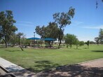 3 BR 2 bath home WITH A POOL! Situated N/S exposure on a large lot w/Park on 2 sides. Low care desert landscaping in the front & back. Oversized 2 car garage,fireplace in the family room open to the kitchen. Formal living & dining room. Kitchen has lots of cabinets,GRANITE COUNTER TOPS,breakfast bar,neutral counters,stainless sink,microwave,RO water system at sink. Walk in closet in master BR. Home has been fitted w/dual pane windows. 2 patios in back yard. Close to fire department at end of park.