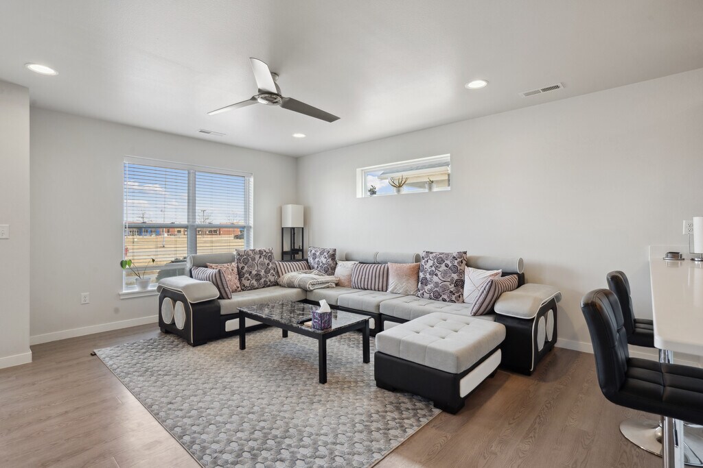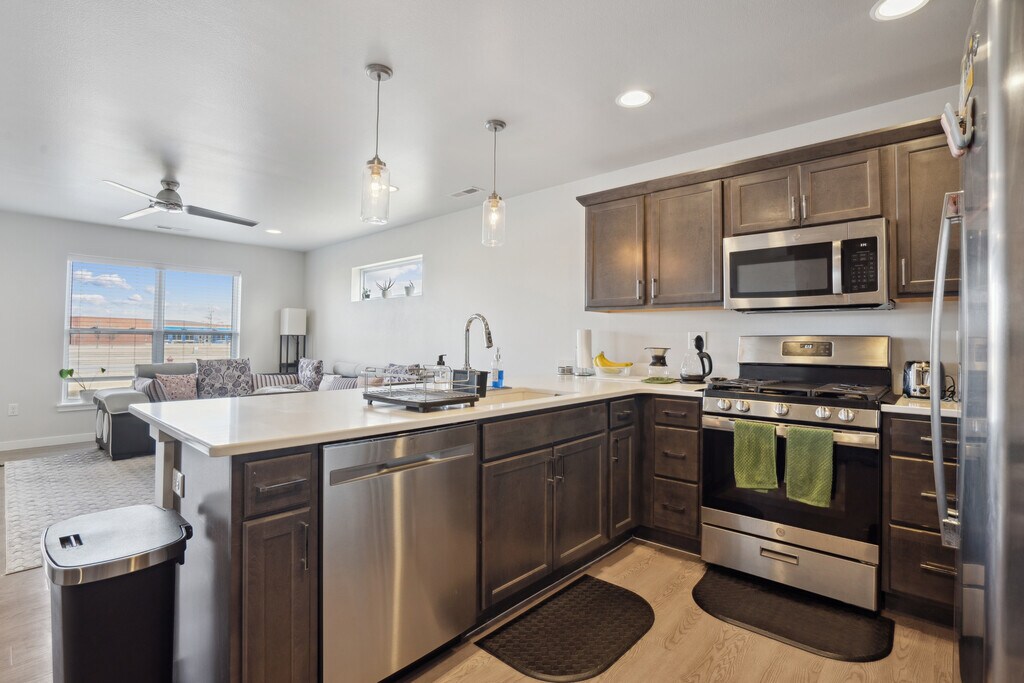 **Furnished Townhouse-Style Condo** The main level features a living room that seamlessly connects to a beautiful kitchen equipped with quartz countertops and stainless steel GE Energy-Efficient appliances, including a gas stove. The kitchen also has a spacious pantry and a half bath for convenience. As you enter through the zero-entry garage door, you'll find a mudroom or drop zone that leads into a two-car attached garage with ample storage space. On the upper level, you will find the primary bedroom, which includes a private bath with dual vanities and a walk-in closet. There is also a laundry room, an additional bedroom with a large closet, and a full bathroom. This condo is conveniently located near parks, trails, ponds, restaurants, shopping, and the new UI Health Care Medical Center, all within minutes. All utilities and internet are included, and short-term leases are available with a minimum stay of 30 days. Please note that pets are not allowed.