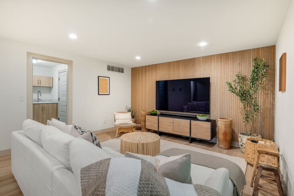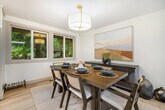 Make this exquisite 3-bedroom, 3-bathroom getaway in the secluded and picturesque neighborhood your base for an unforgettable visit to beautiful Gig Harbor. Enjoy incredible indoor comforts or take in the beauty of the forest surroundings after returning from exciting adventures at the scenic waterfront or the bustling downtown Gig Harbor. The luxurious retreat seamlessly blends style and comfort across two spacious floors, featuring two alluring living rooms, a fully equipped kitchen, and a fully furnished office space. Experience tranquility and comfort in this modern property, designed for relaxation and entertainment, ensuring an unforgettable stay. The first floor features two living rooms and a fully equipped kitchen with a dining area perfect for shared meals. Marvel at the magical forest surroundings through large windows or by stepping into the yard, where you can lounge, play on the well-manicured lawn, and enjoy a BBQ in complete privacy. The second floor offers three bedrooms, each designed as a cozy retreat for a restful night's sleep, with the master suite featuring a balcony and an ensuite bathroom. Free parking is available at the property. A dog is allowed on request with a pet fee. If you have brought along a furry companion, please remember to pick up after your pets relieve themselves. This spacious getaway is located in the tranquil and picturesque neighborhood near Gig Harbor, offering a relaxing and secluded stay just a few minutes away from the blissful waterfront and the vibrant downtown area. Wake up in complete serenity, surrounded by a magical forest ambiance. Explore the historic waterfront, the charming downtown Gig Harbor with its eclectic boutiques, art galleries, and cozy cafes, and enjoy the vibrant culinary scene. Nature enthusiasts will find paradise with numerous trails, Kopachuck State Park, and Harbor Family Park for picnics, beachcombing, and kayaking. The location is an ideal gateway to the Olympic Peninsula, with easy access to Olympic National Park. Smoking inside the home is prohibited, and any evidence of smoking will result in a fee for odor removal and furniture cleaning. No parties or events are allowed, and violations will incur a deep cleaning fee between $500-700, along with a charge for carpet cleaning. Outdoor quiet hours are from 10pm to 7am daily, and failure to adhere to this rule can result in an additional fine of $100 per incident. Early check-ins are not guaranteed and are subject to a fee of $25 per hour. Late check-outs must be approved and are $50 per hour beyond the regular 11am check-out. If guests stay past the check-out time without approval, they will be charged for the next night’s stay. A $50 fine per guest will be applied for any guests in excess of the reserved number. A $500 deep cleaning fee will apply if any smoke debris or smell is identified during or after a guest’s stay. The property includes a fully furnished office space, ideal for guests who need to attend to work during their stay. The office features a workspace with a desk, chair, and lamp, and a sofa that converts to a double bed. Wi-Fi is available for your convenience.